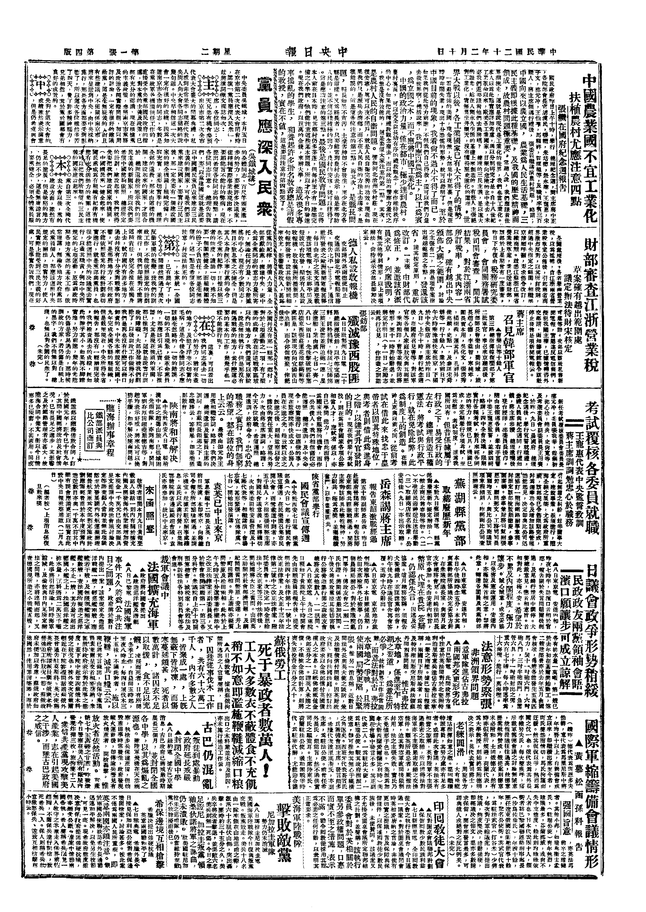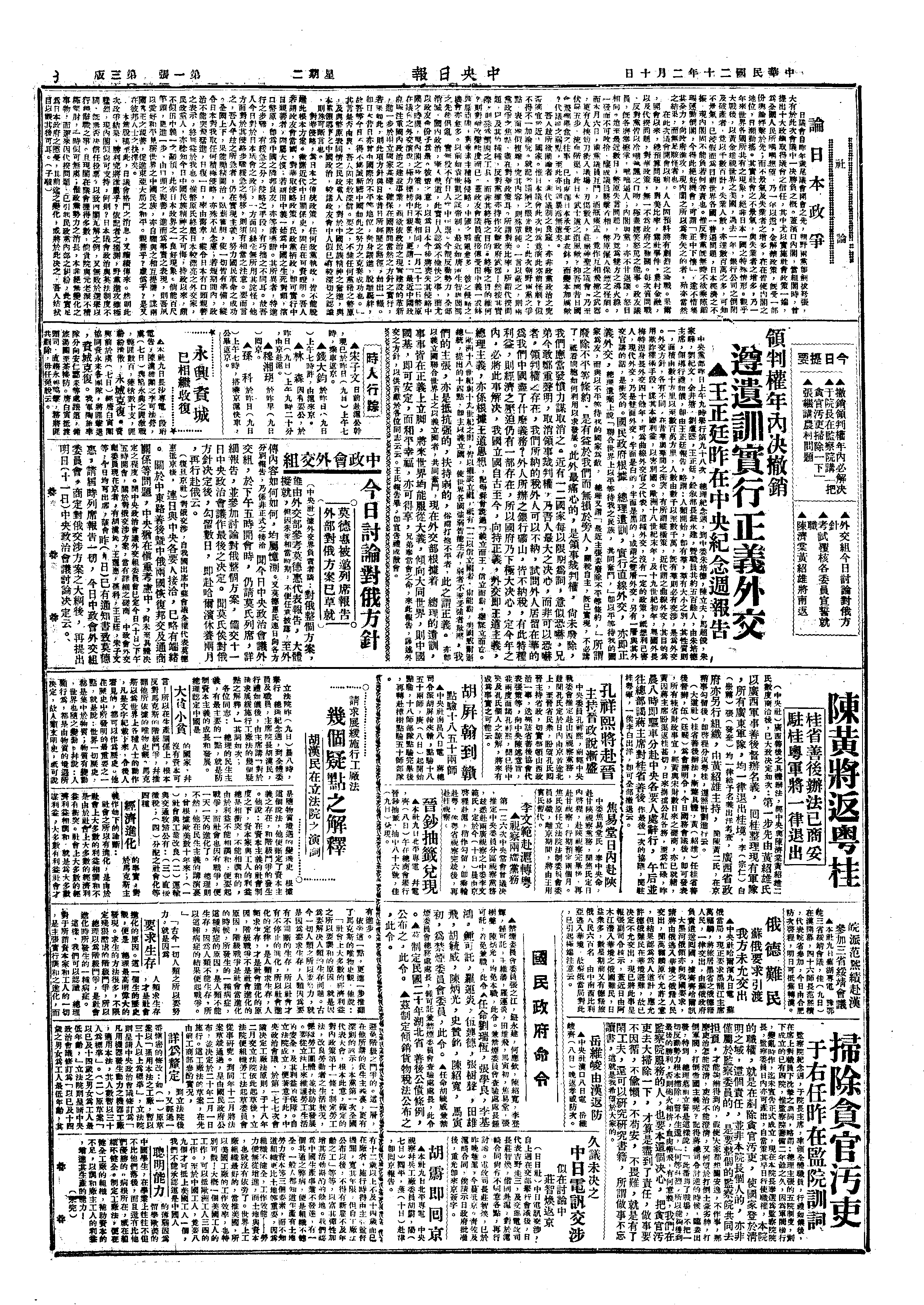 中华民国史大事记>19310210