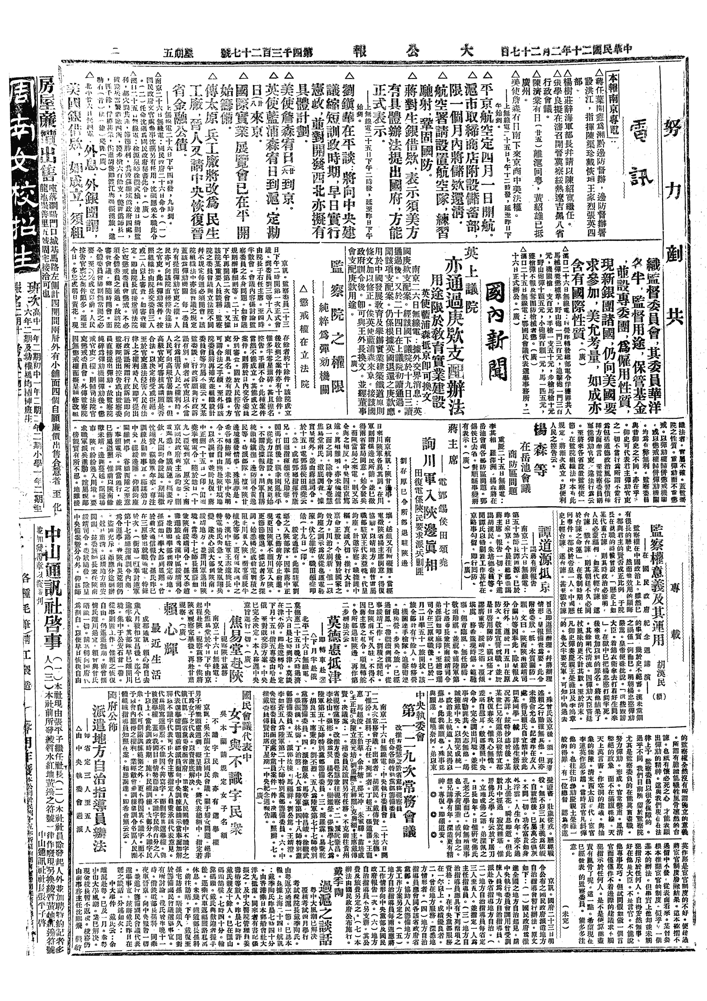 中华民国史大事记>19310227