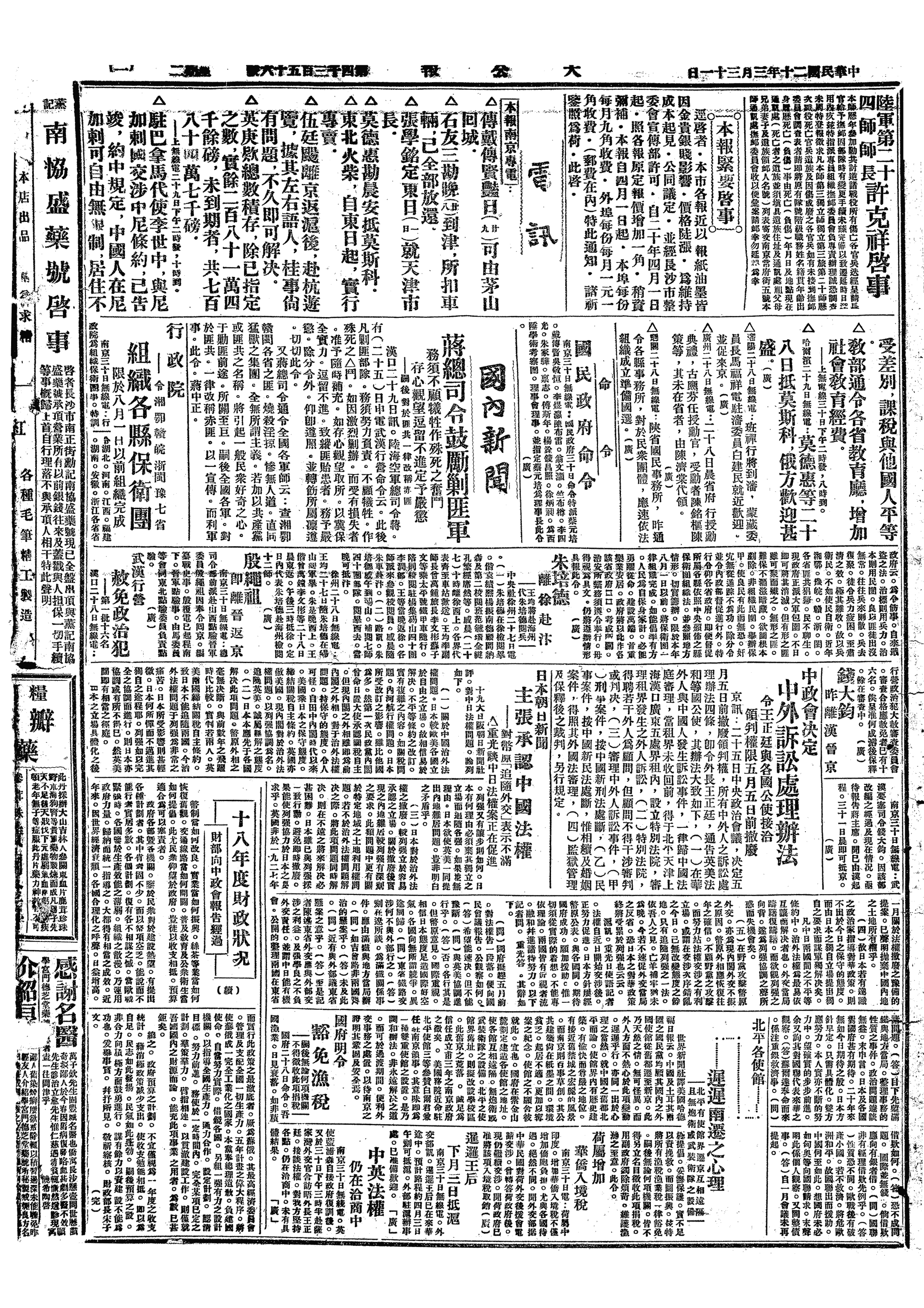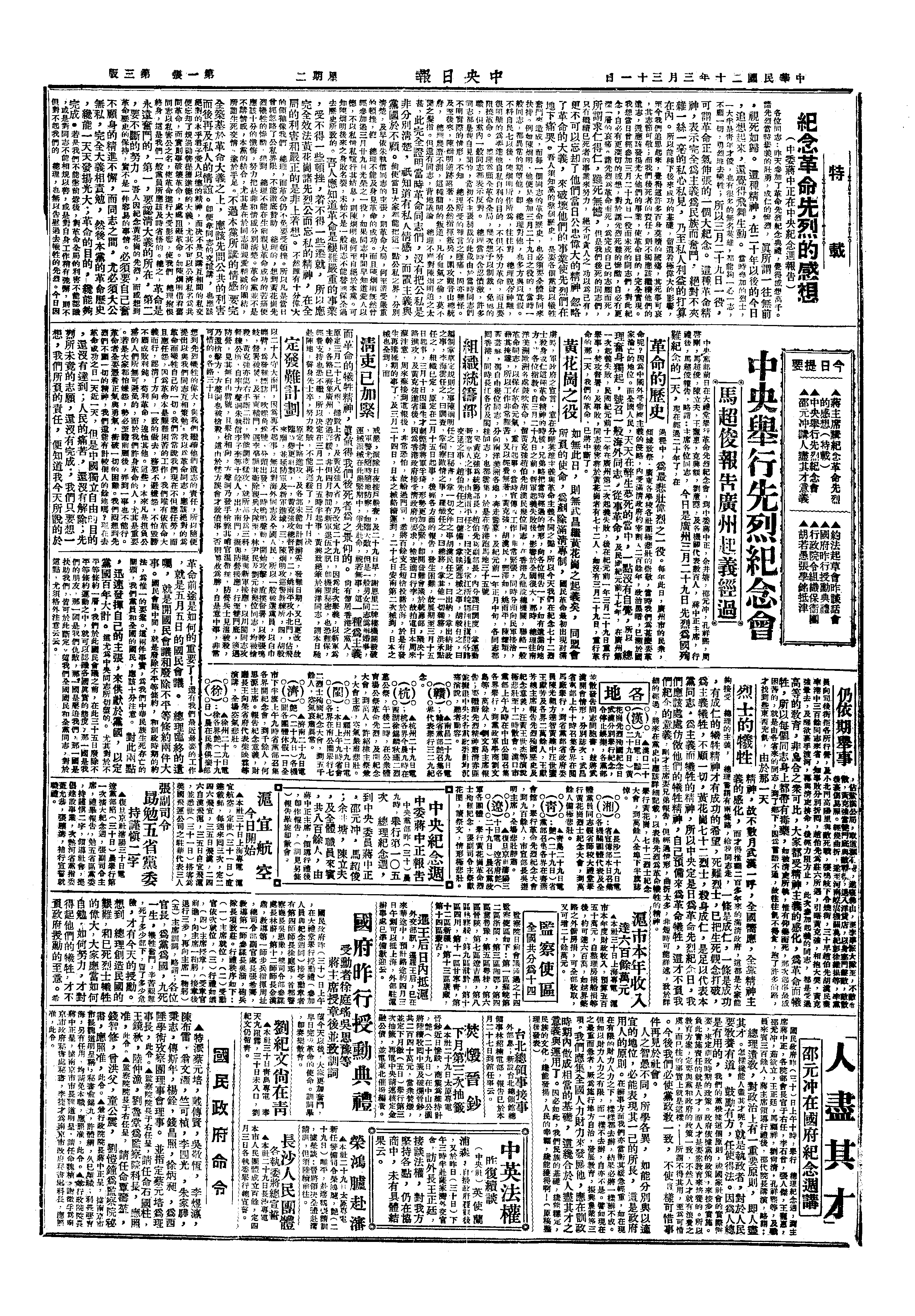 中华民国史大事记>19310331