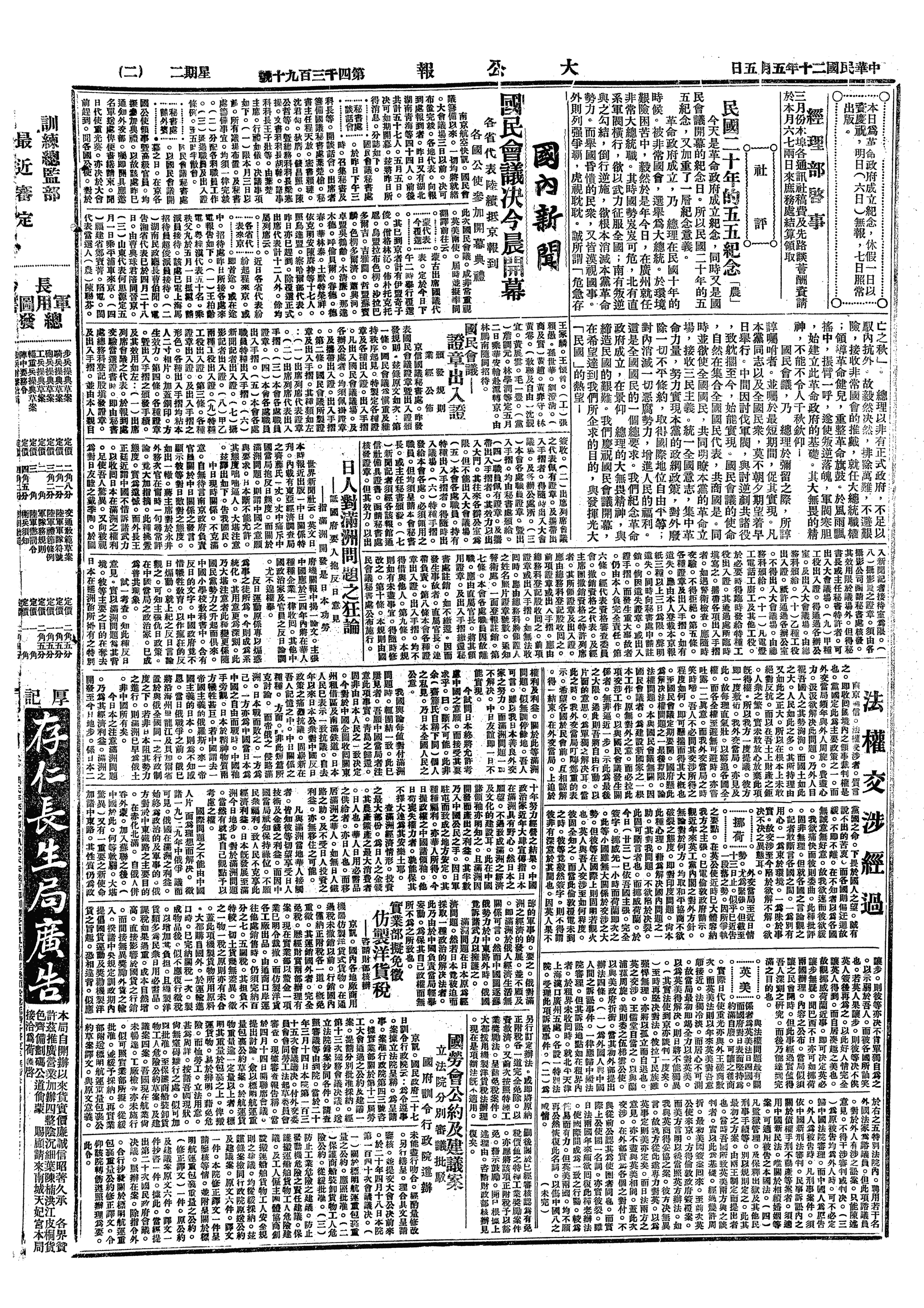 中华民国史大事记>19310505