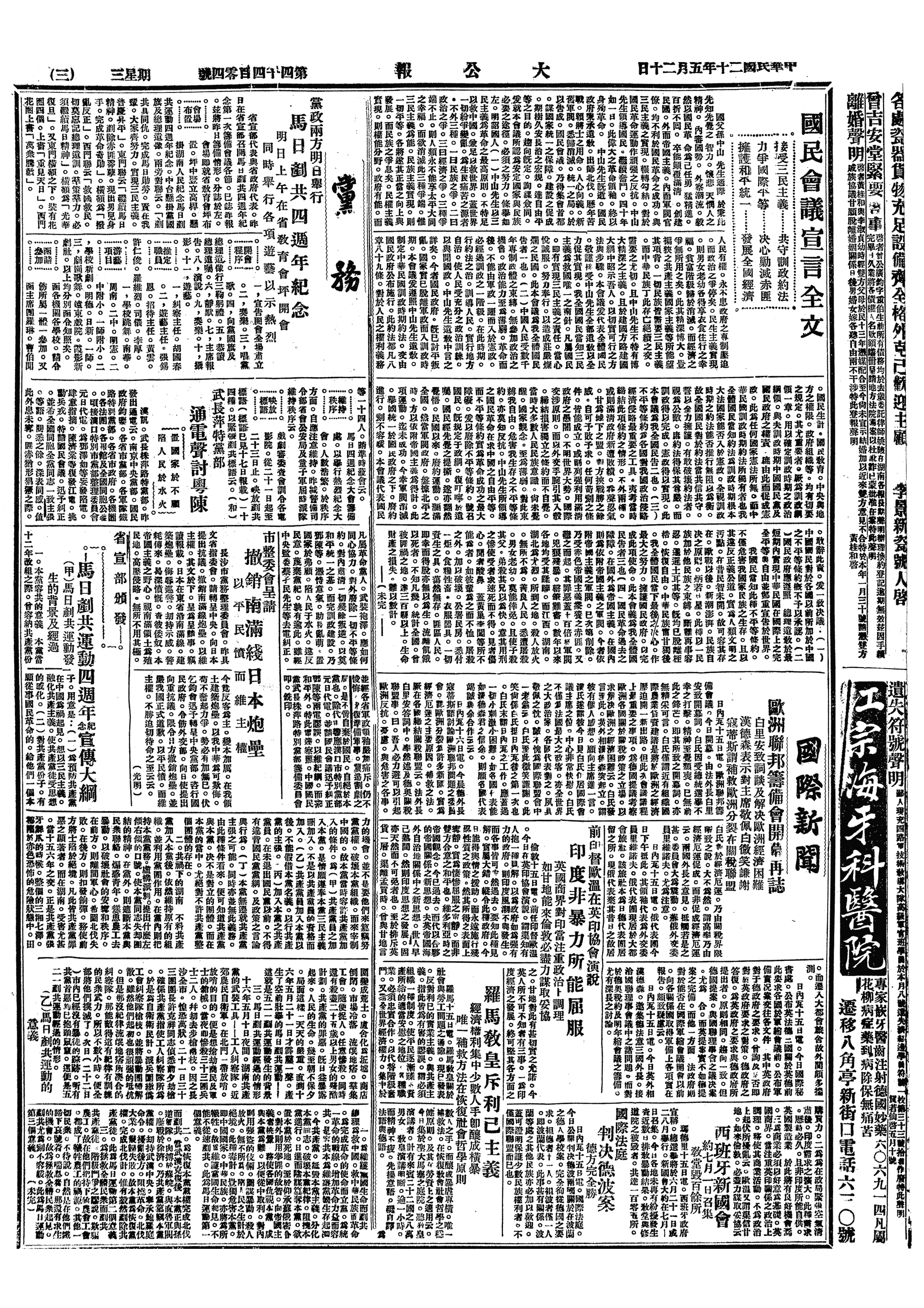 中华民国史大事记>19310520