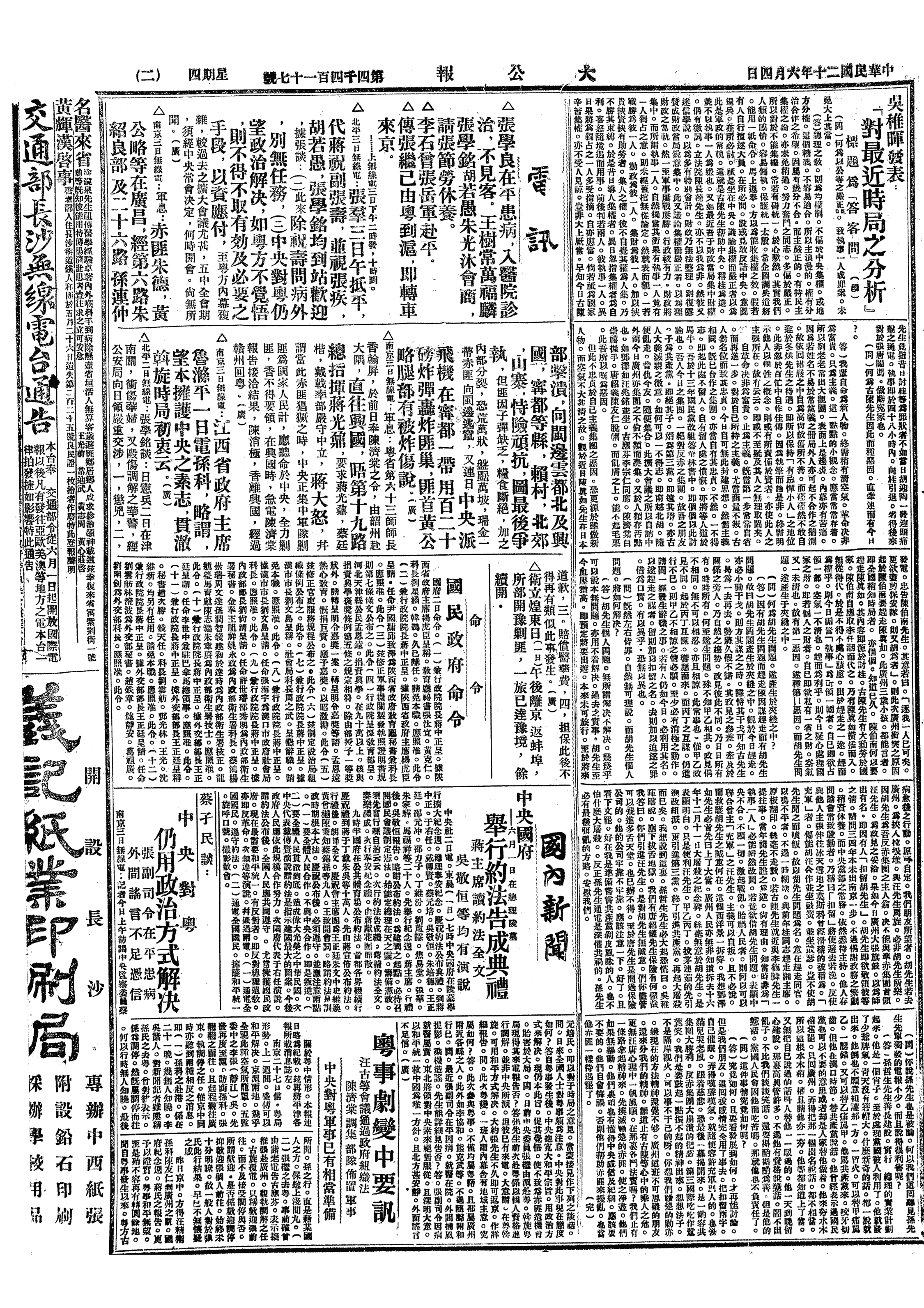 中华民国史大事记>19310604