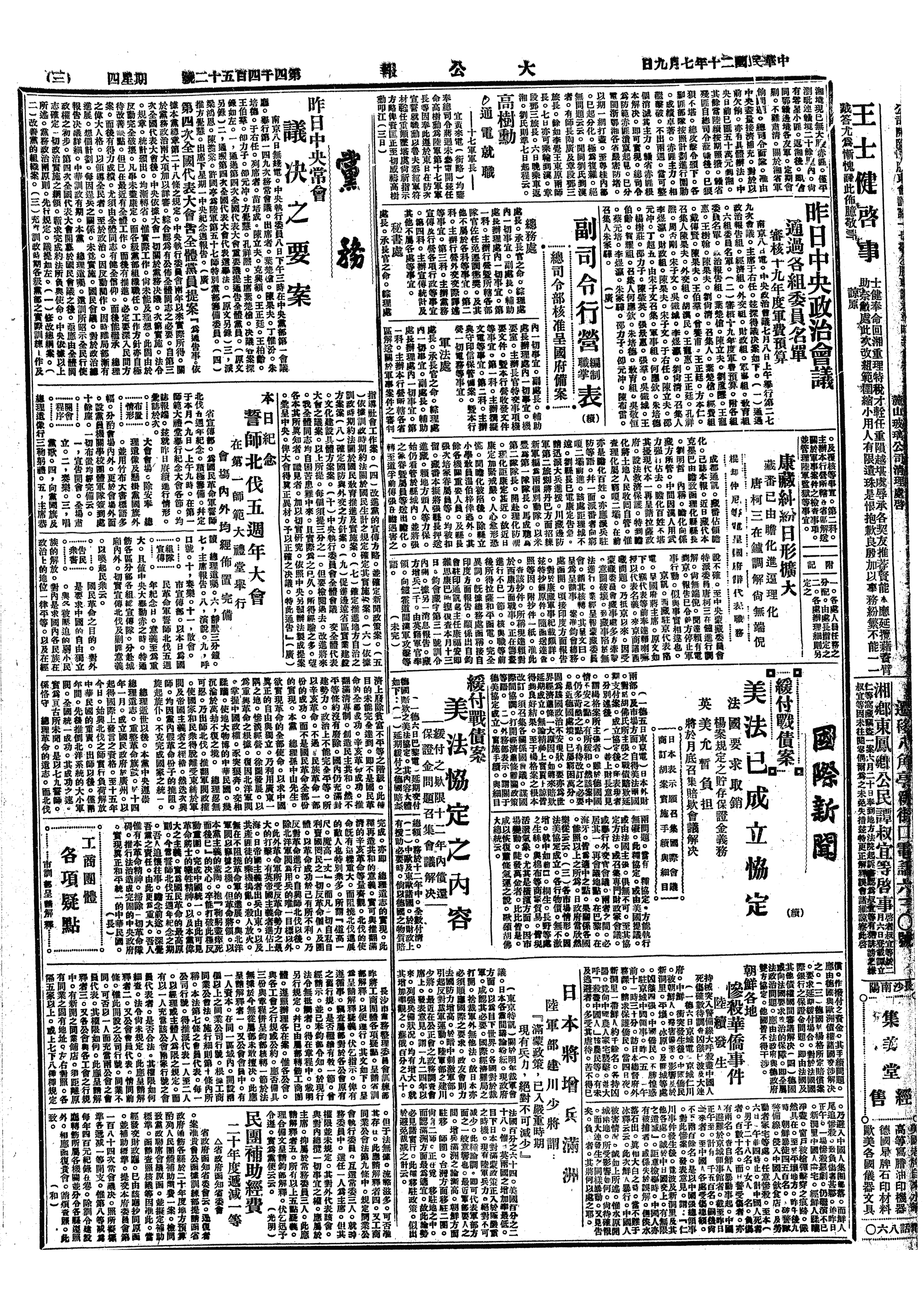 中华民国史大事记>19310709
