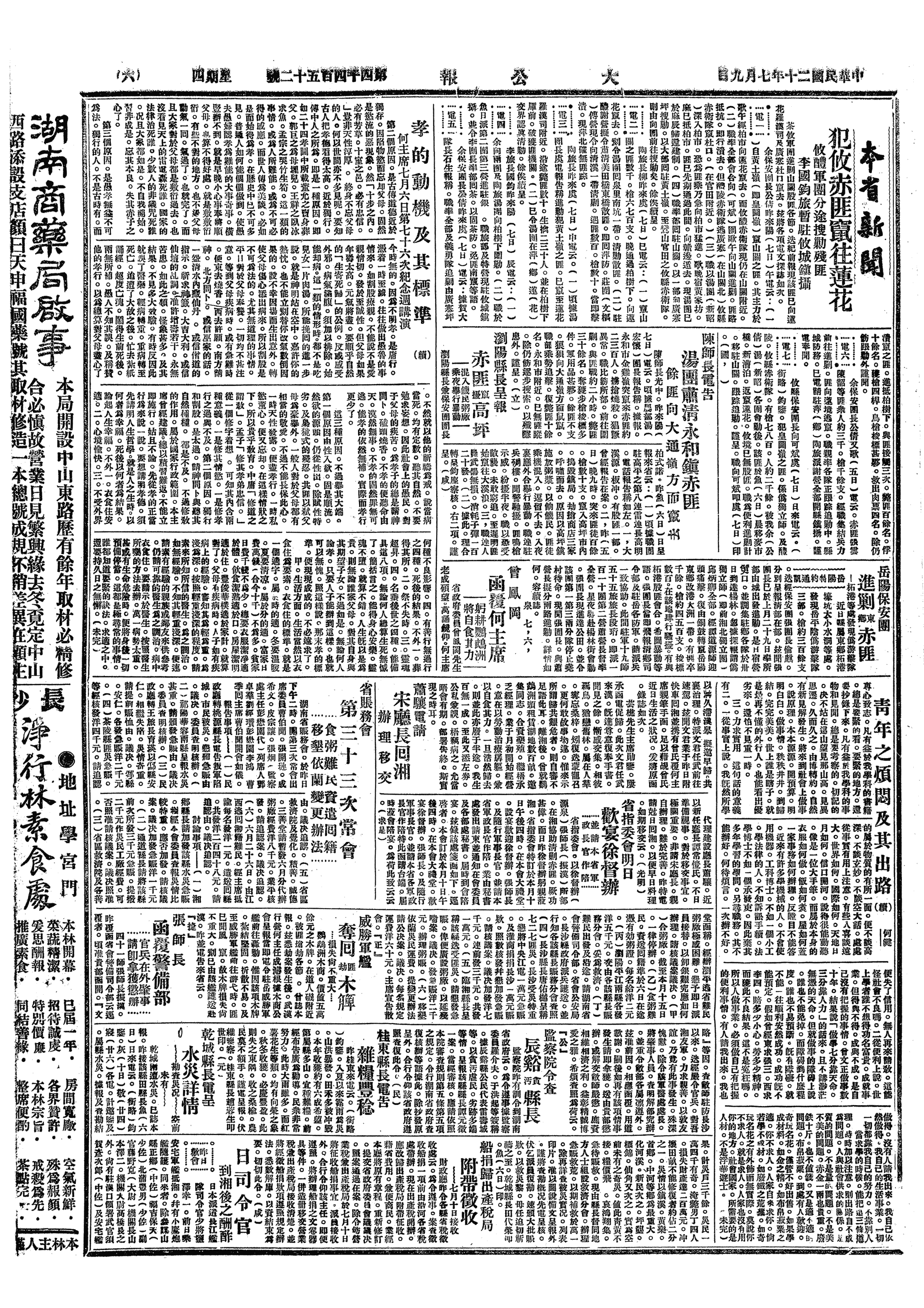 己、连日进攻河南固始之红军萧方被二十五师戴民权击退。