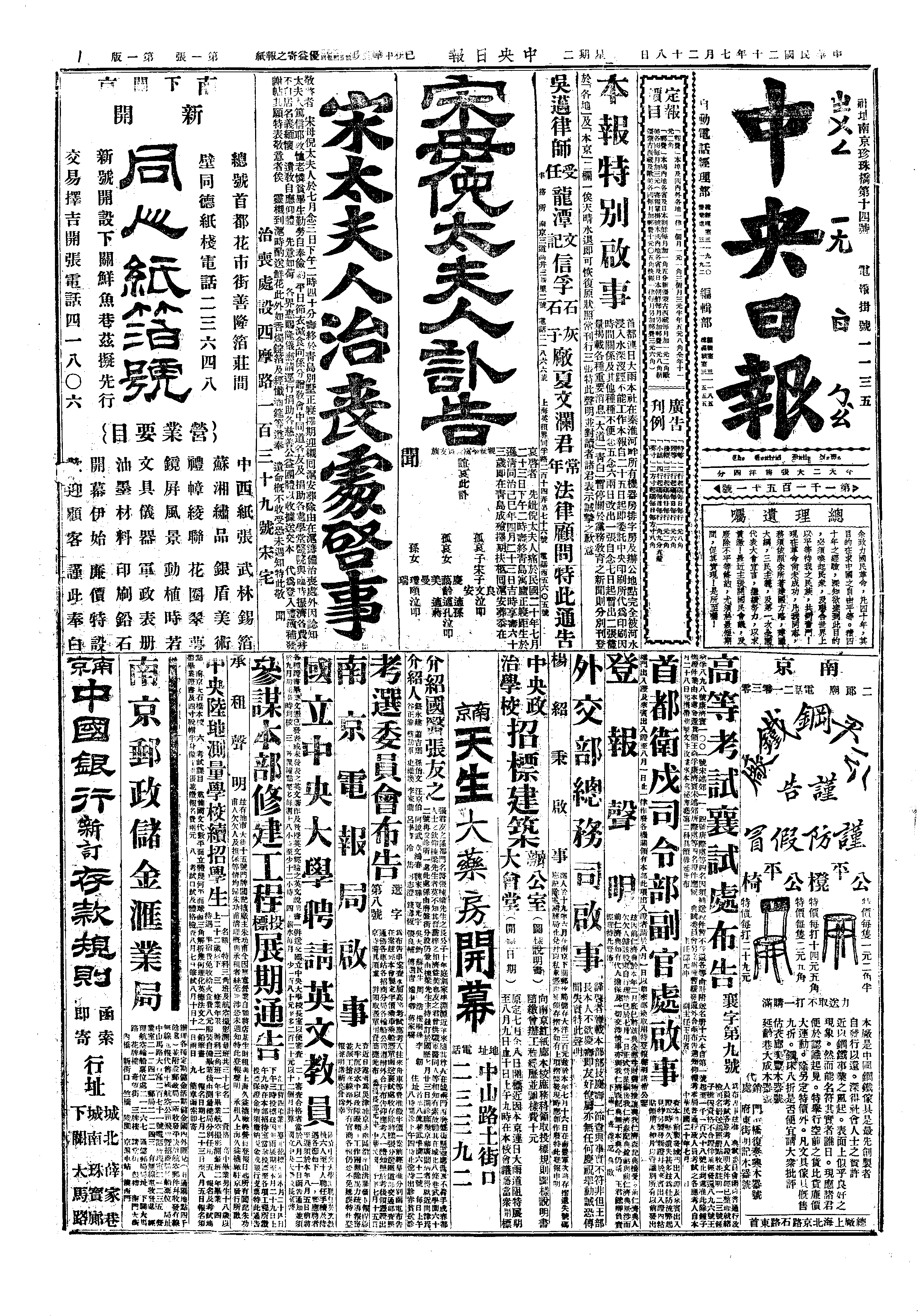 中华民国史事日志>19310728