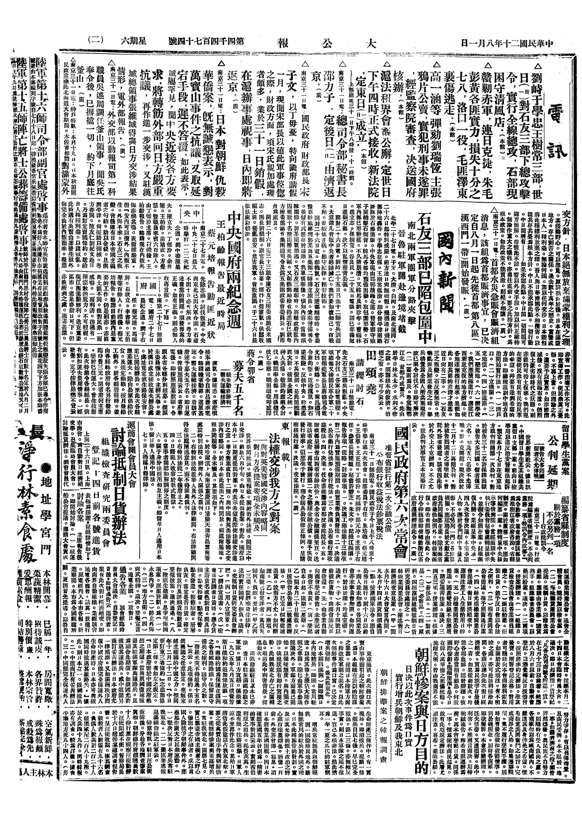 中华民国史大事记>19310801