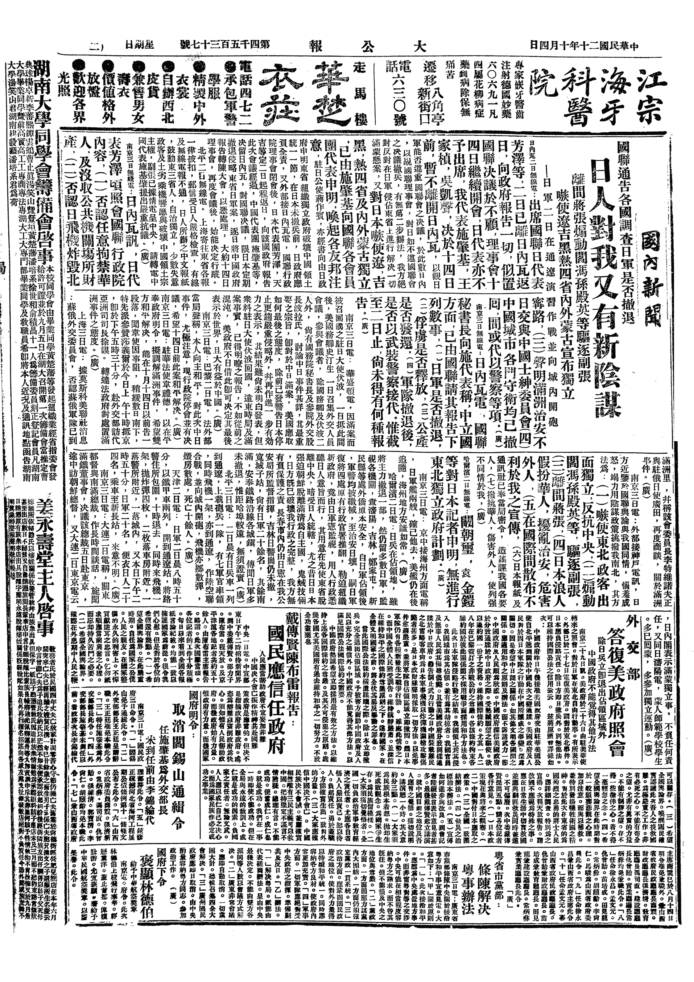 中华民国史大事记>19311004