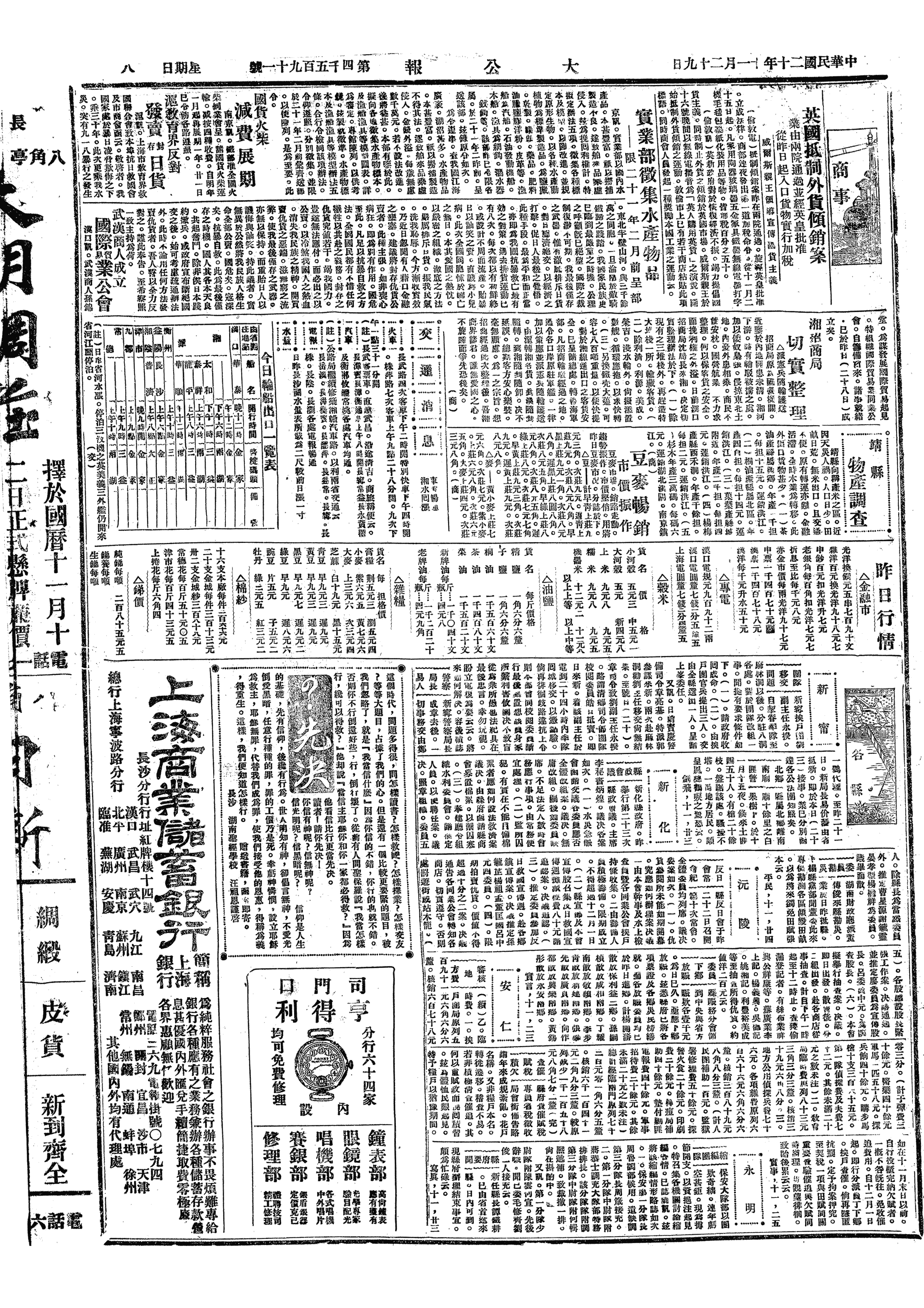 换大洋十元,钱价十六千八百文。今日《时事周报》,予像同柚、植一并印出,又登予《题皮怀白宴坐图》诗四首。夜阅《四溟诗话》四卷完。佛学社徐探清任内江知事,今日报已死矣,不过四十耳。