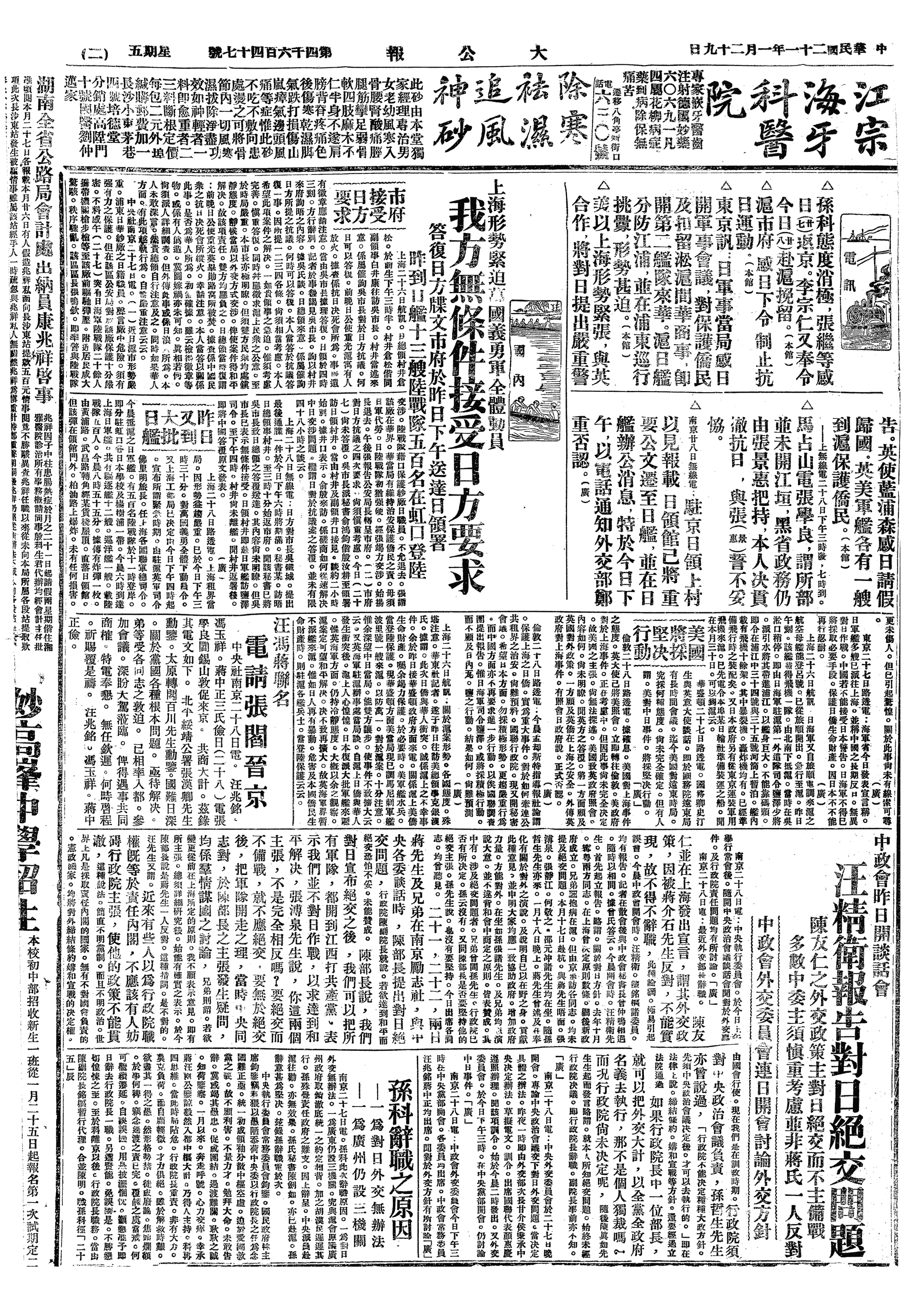 中华民国史大事记>19320129
