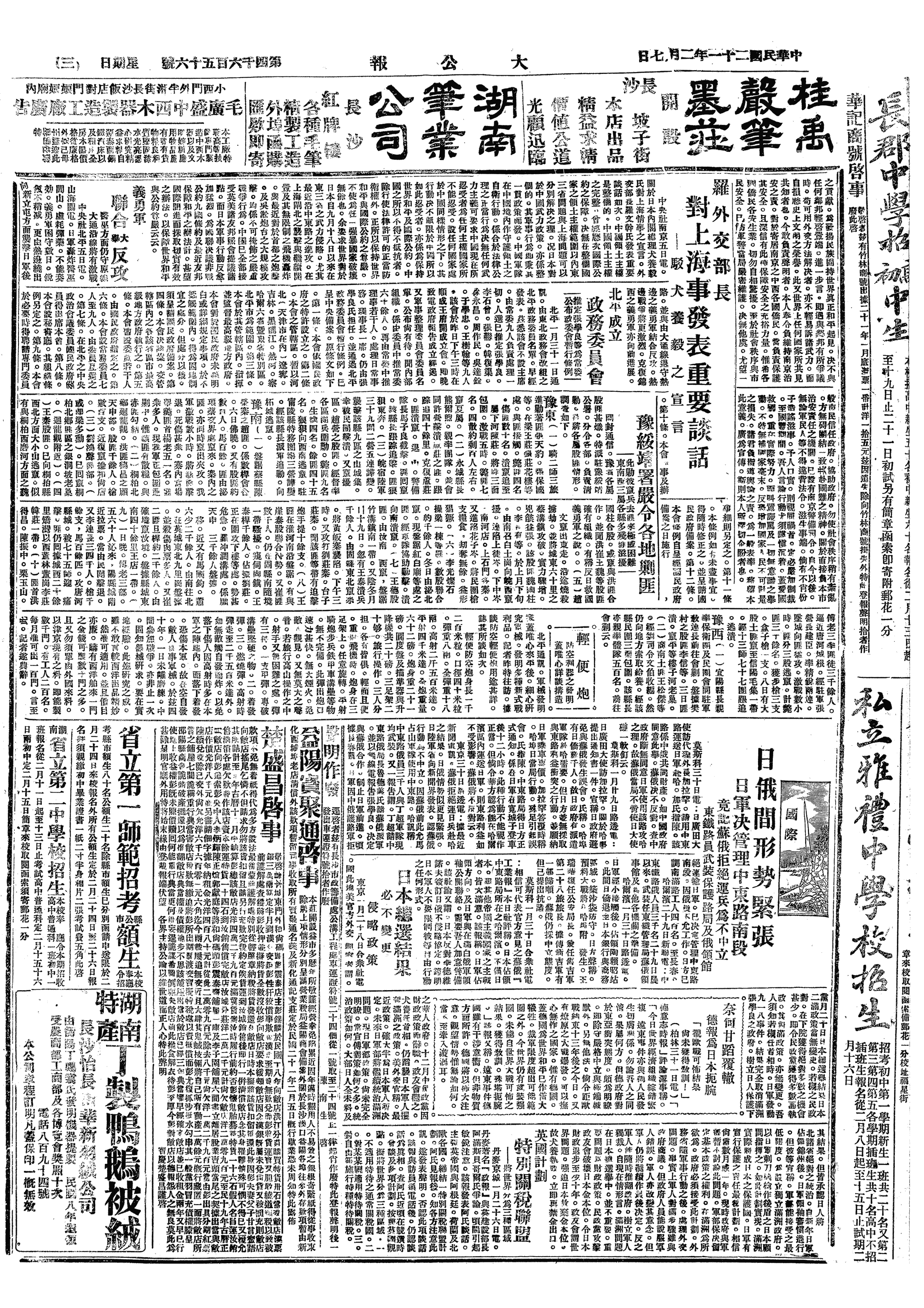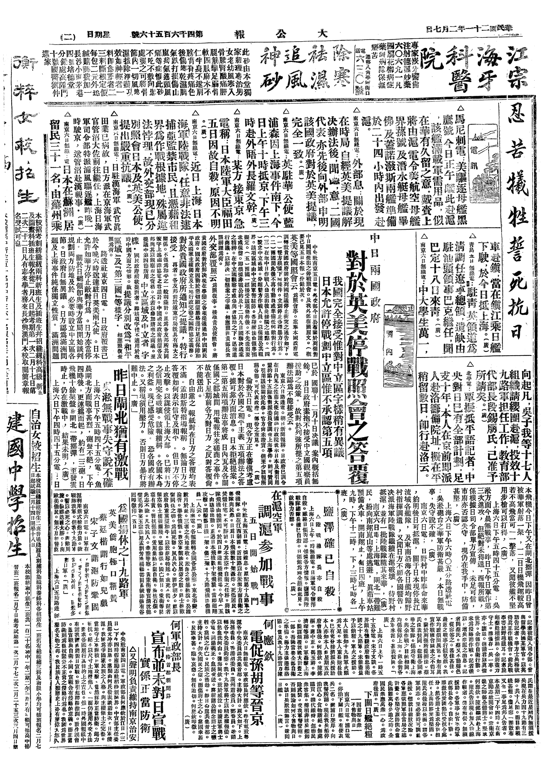 中华民国史大事记>19320207