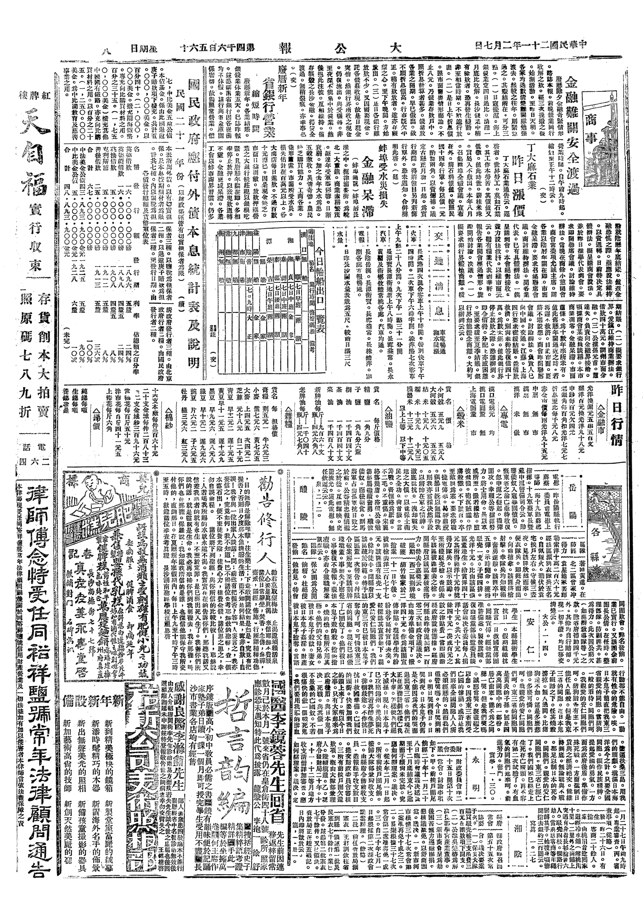 △ 上海市商会发布公告,劝告各界援款抚恤前敌阵亡将士家属,以慰英魂而励士气。