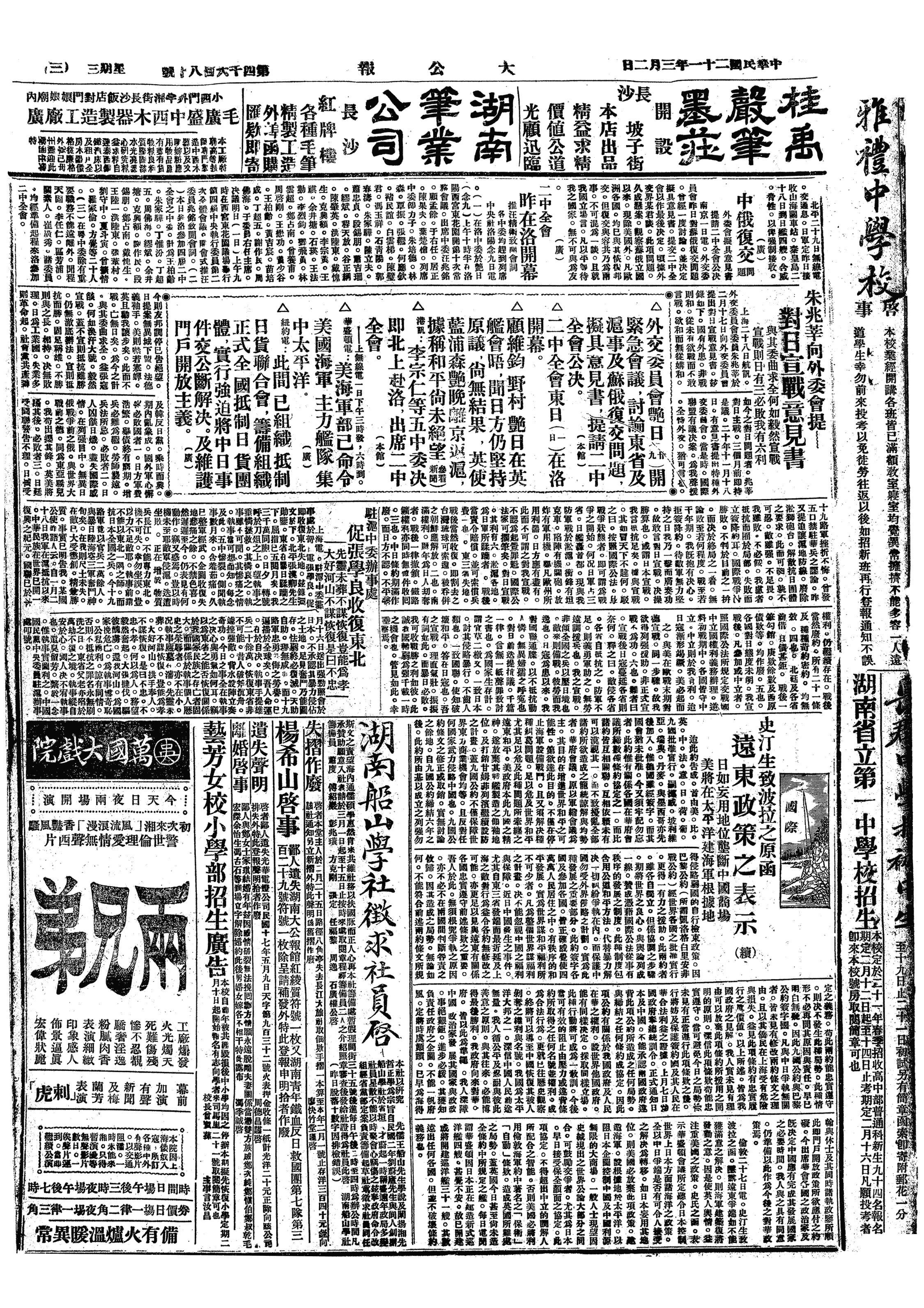 中华民国史大事记>19320302