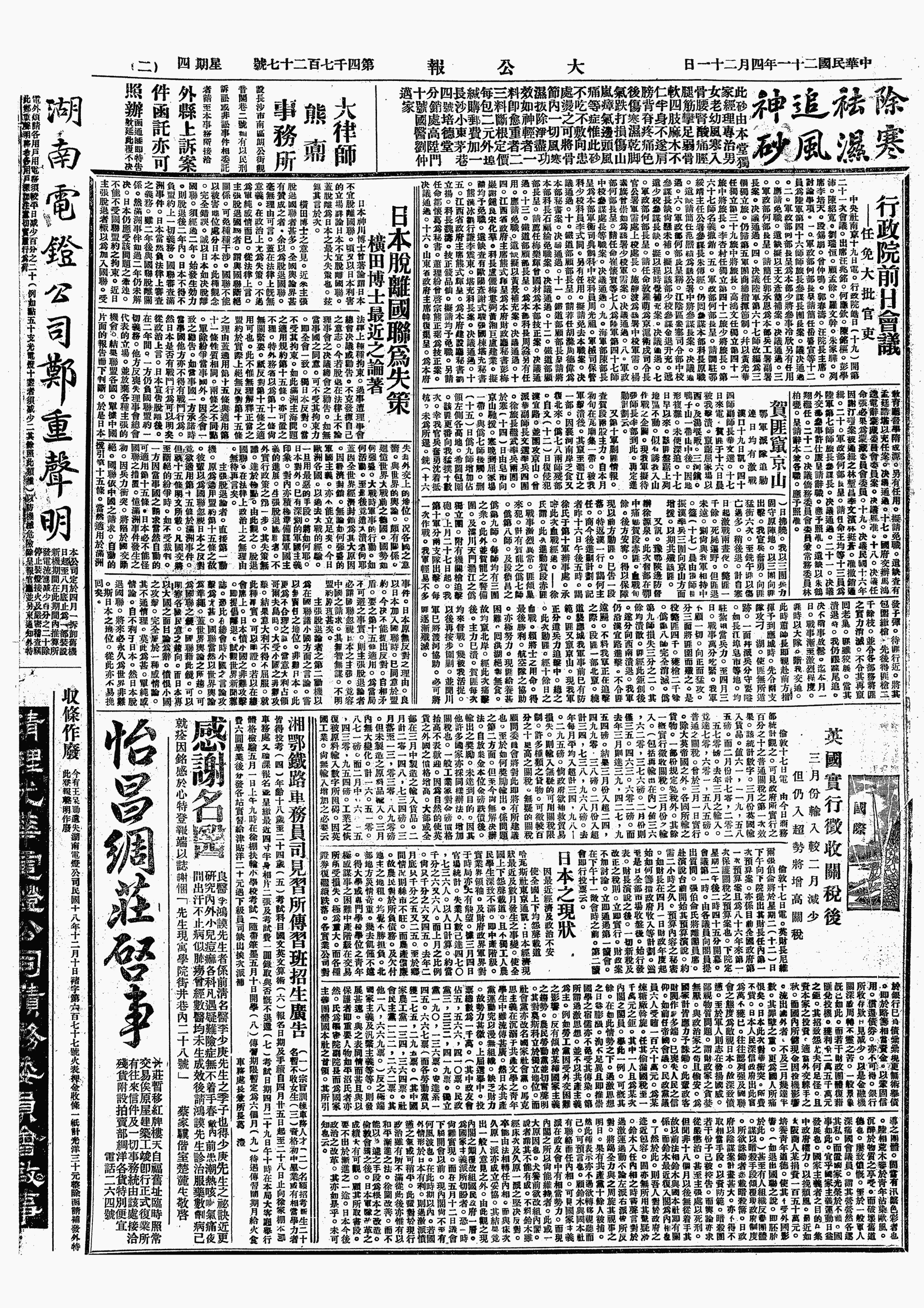 中华民国史大事记>19320421