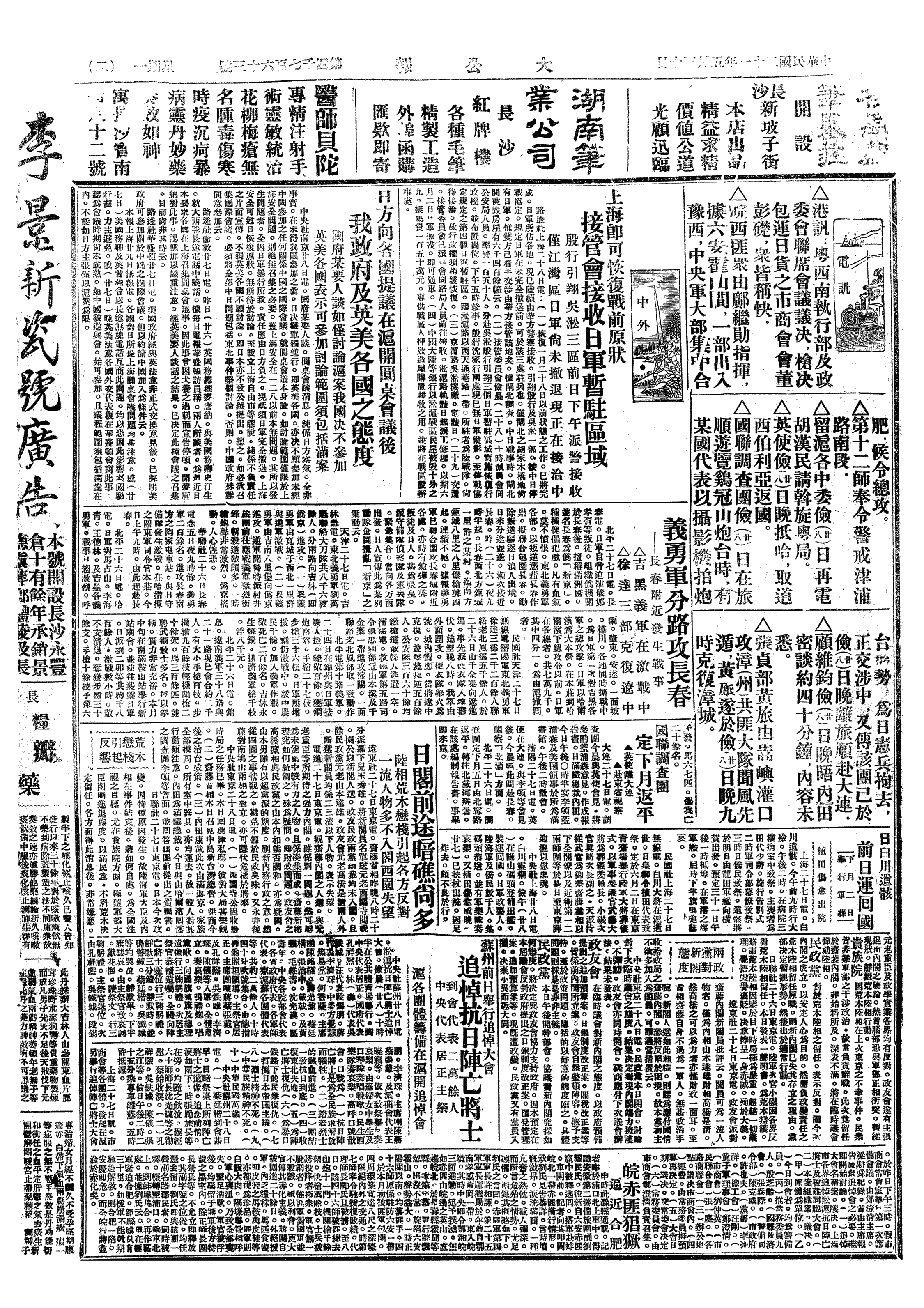 △ 国联调查团离大连返沈阳。