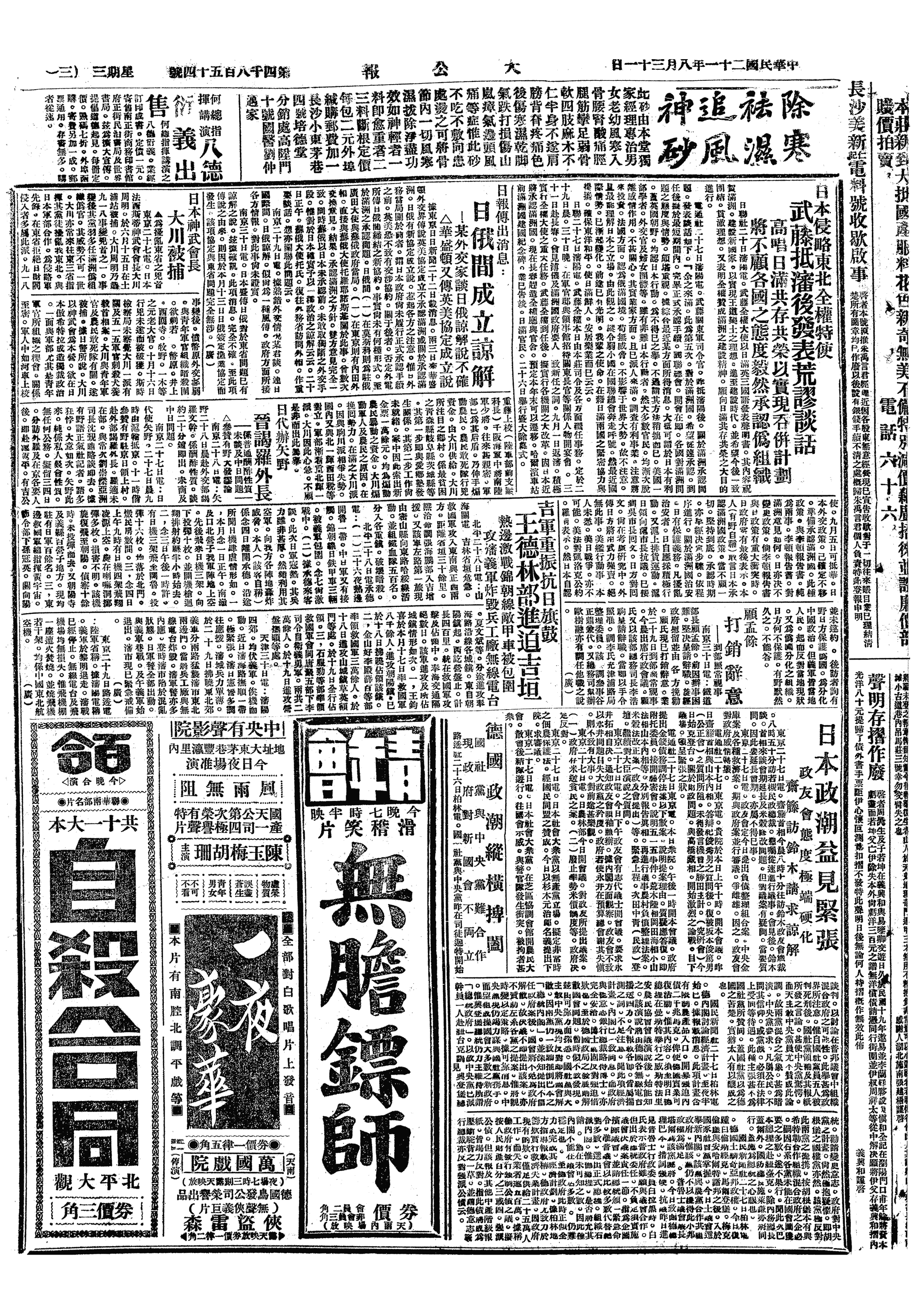 中华民国史大事记>19320831