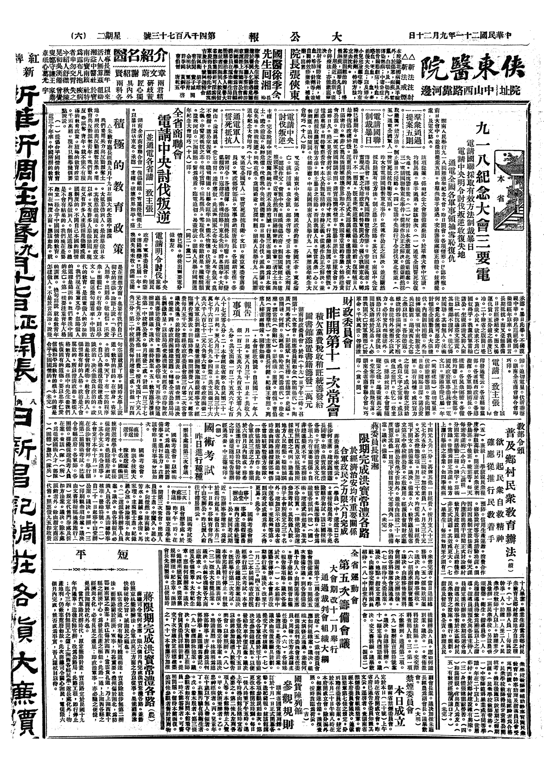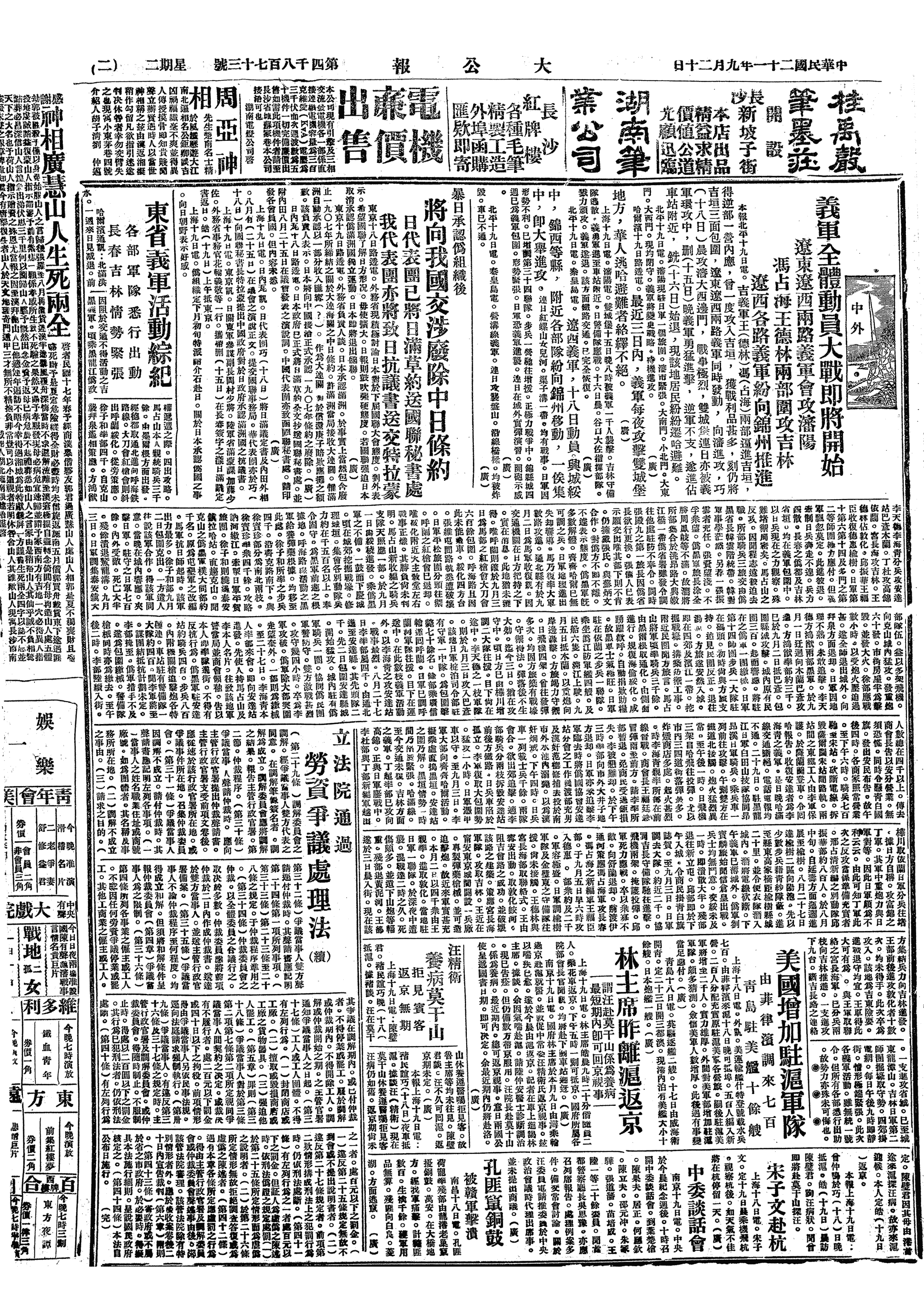 中华民国史大事记>19320920
