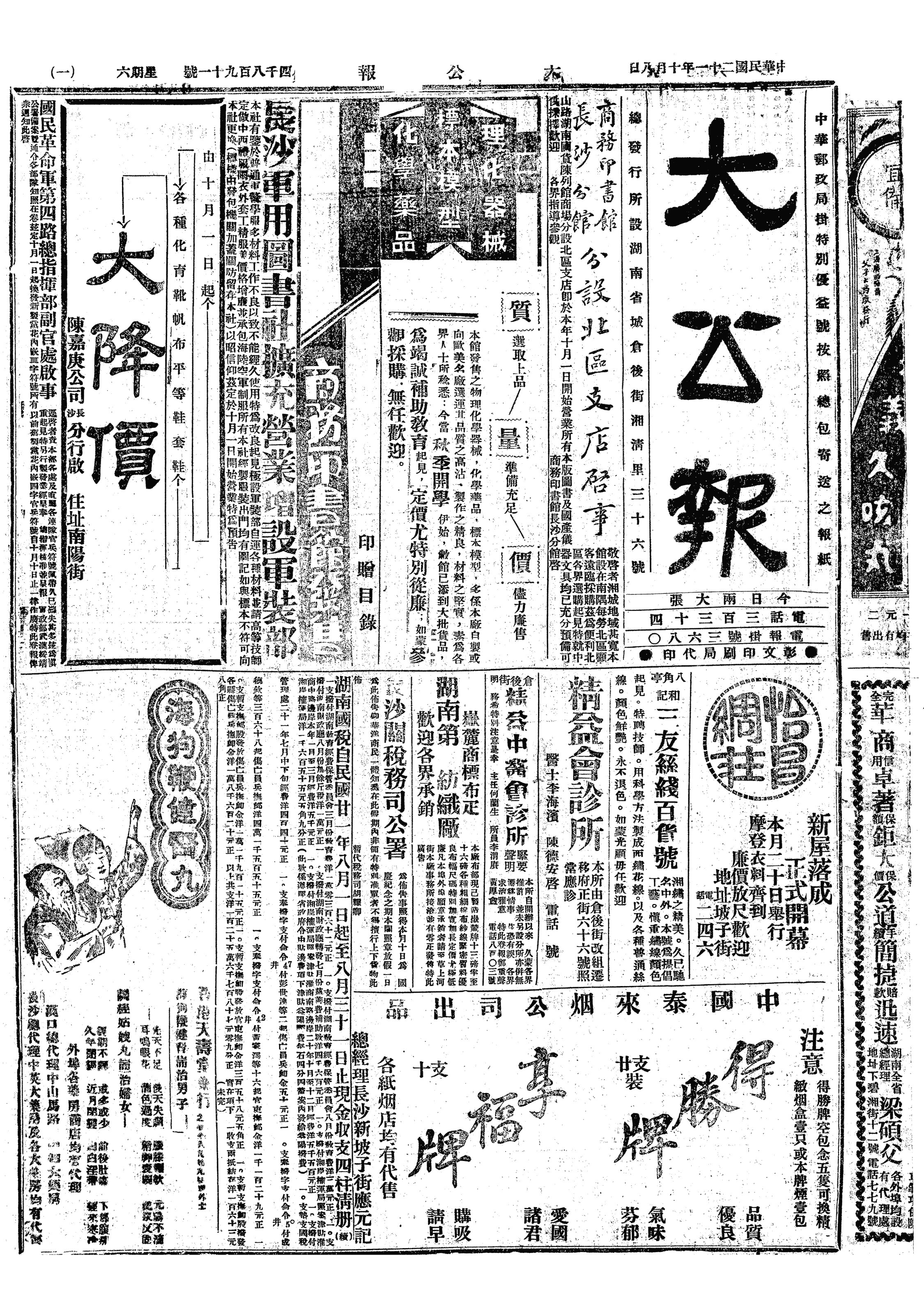 午后五时许抵汉,经见破乱之财政部造纸厂,寓中央银行。