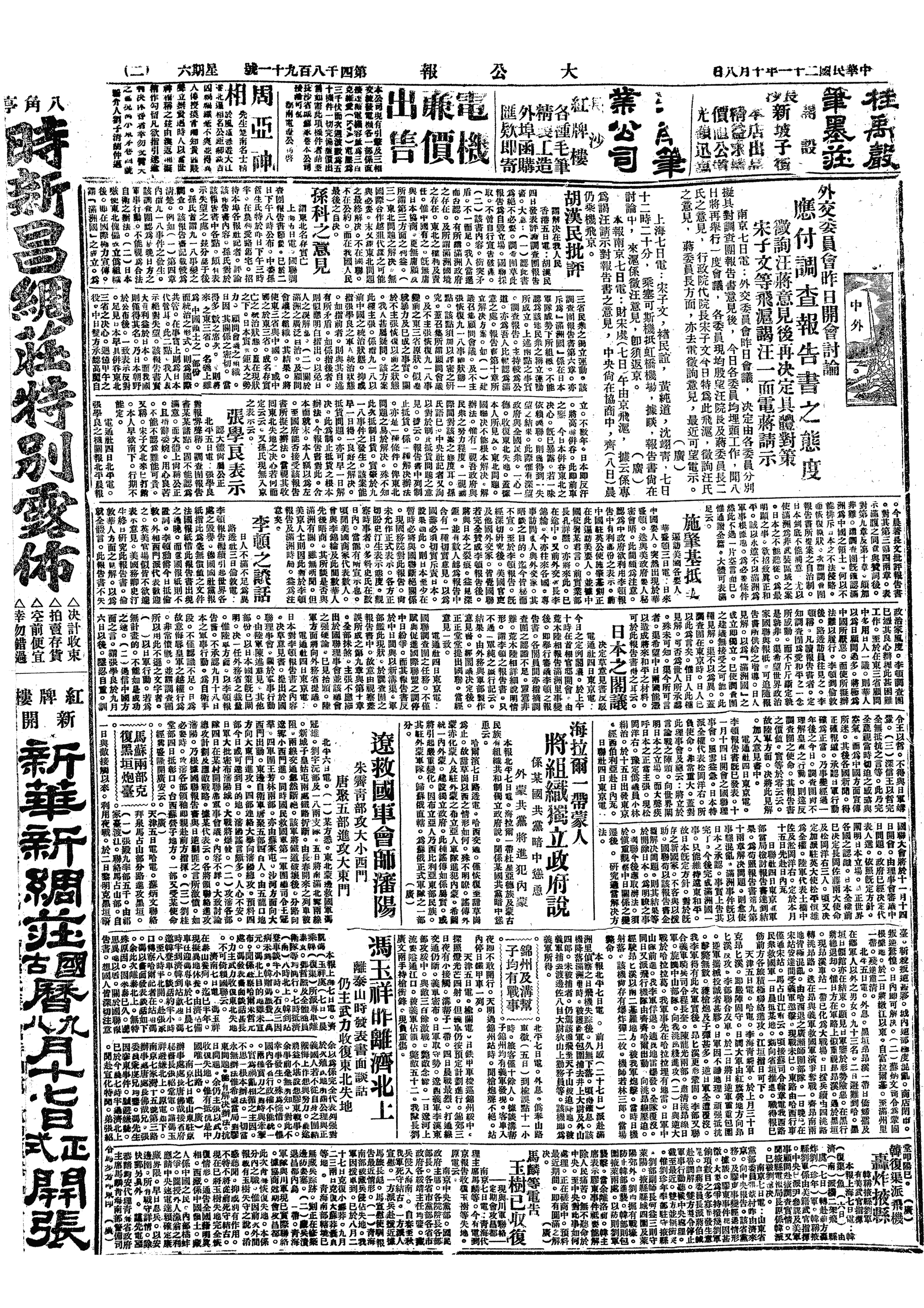 中华民国史大事记>19321008