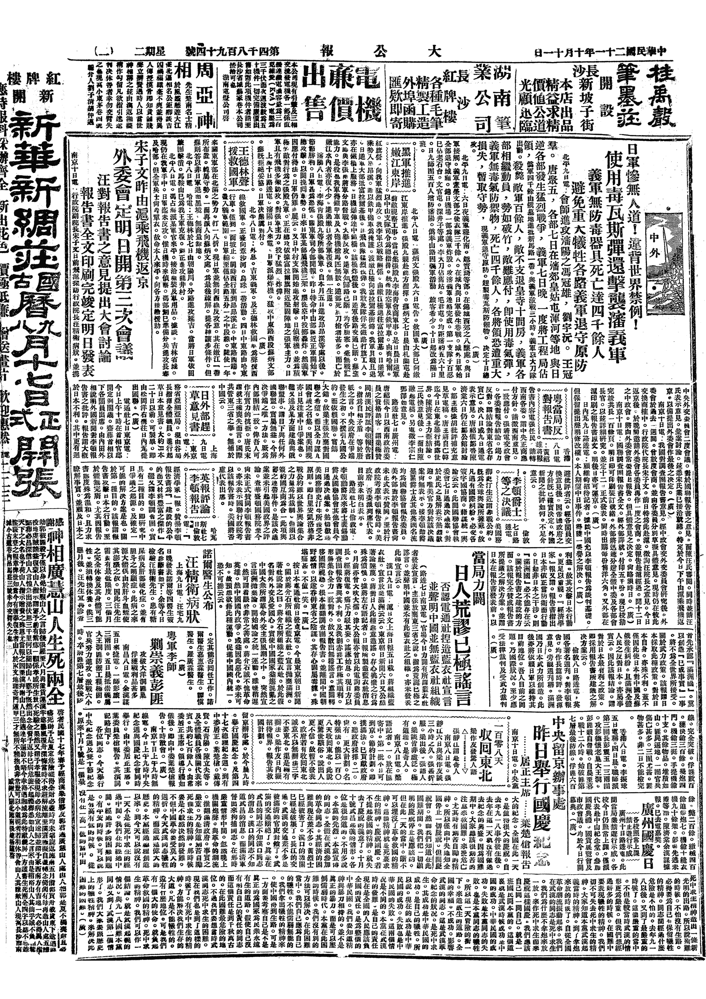 中华民国史大事记>19321011