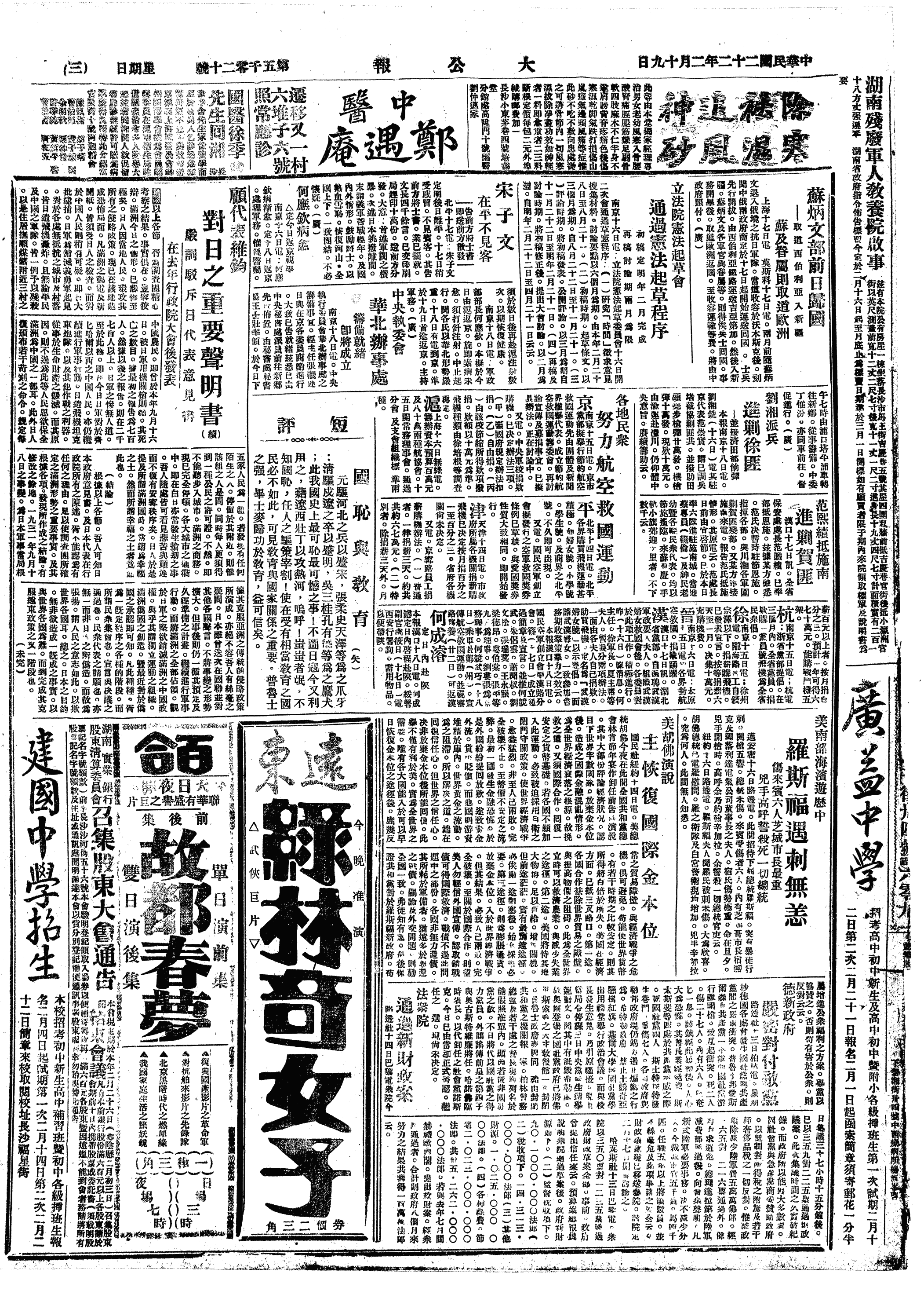 中华民国史大事记>19330219