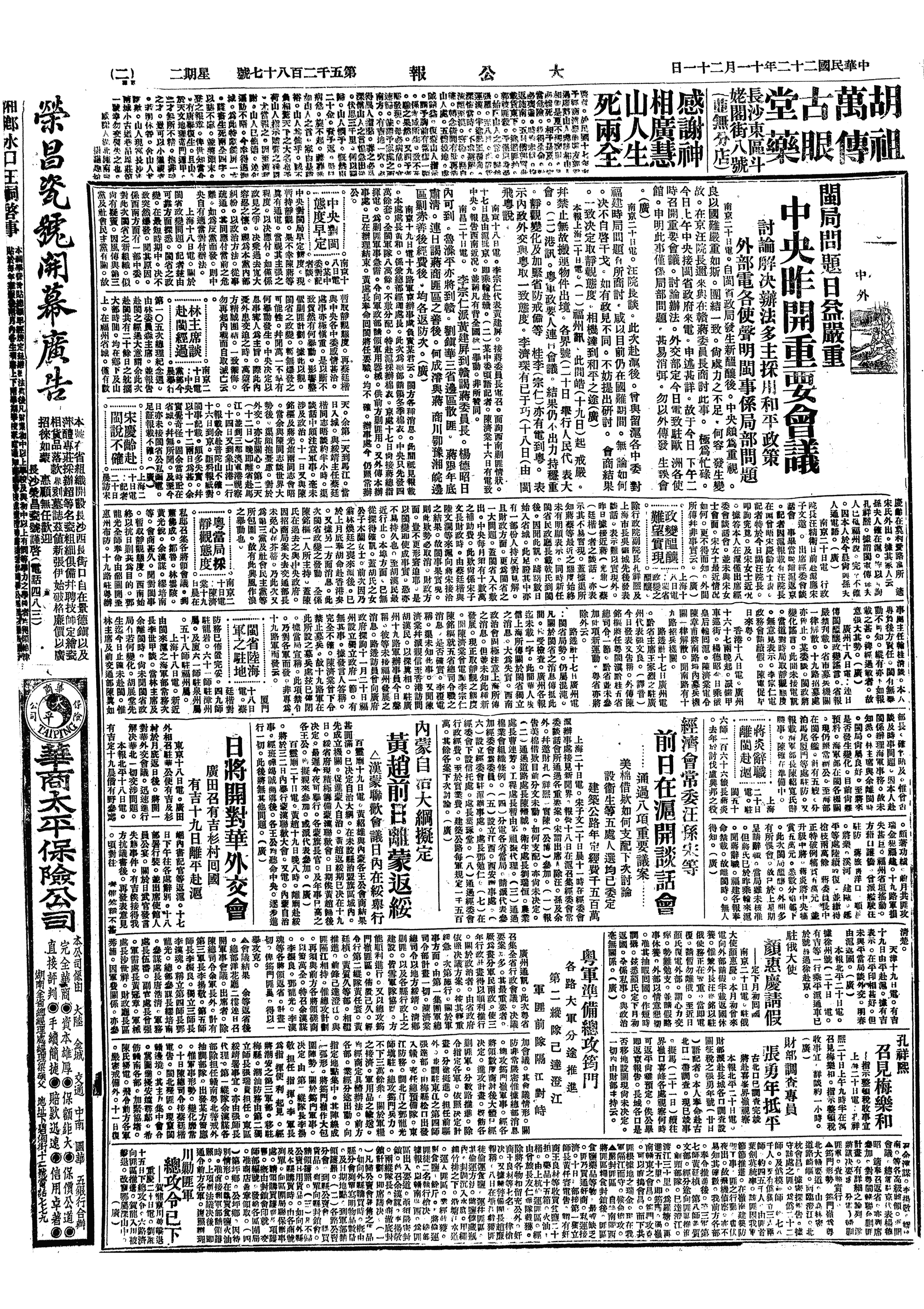 中华民国史大事记>19331121