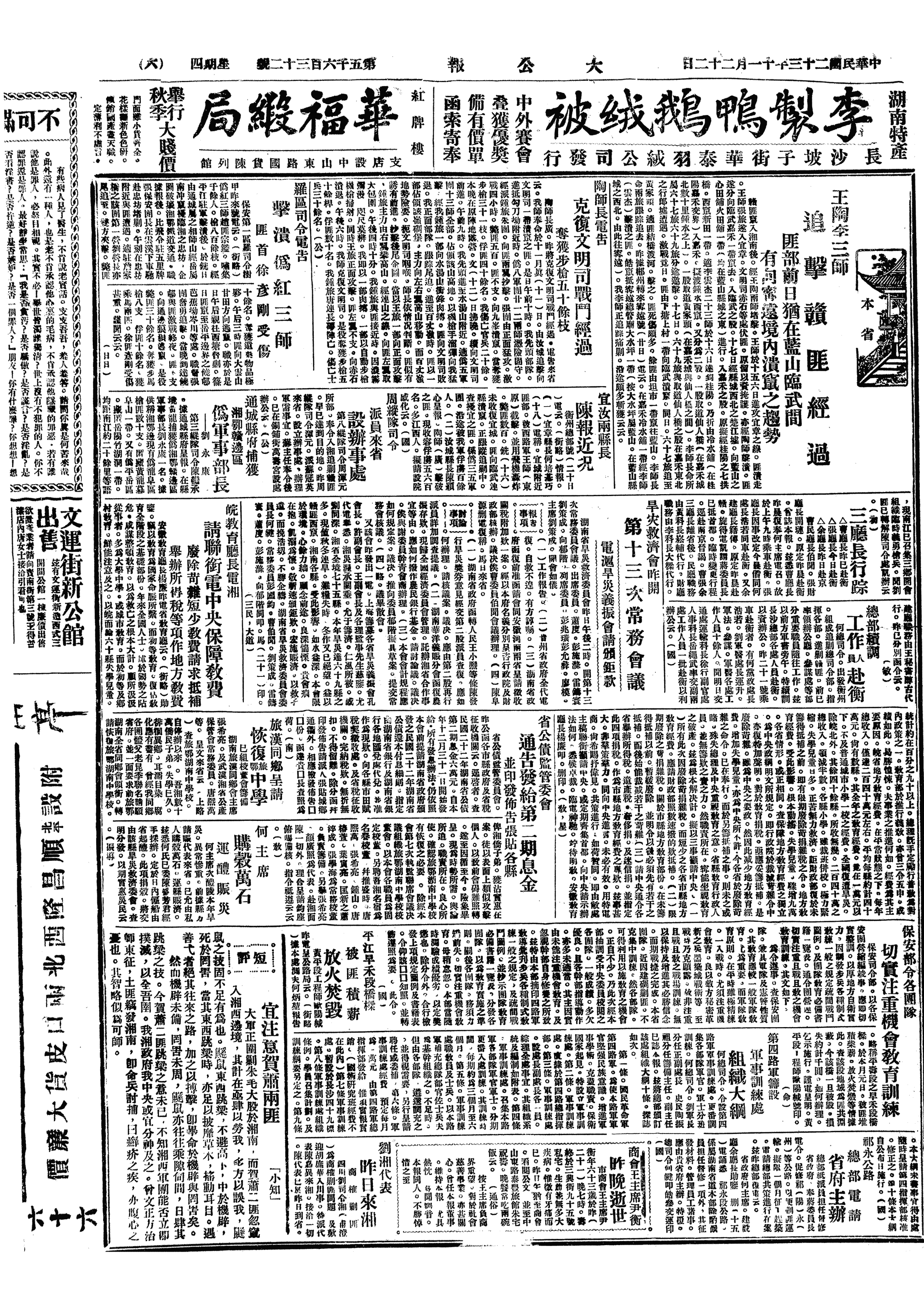 △ 新红10军方志敏部进至常山县芳村,浙江保安处派兵两营间道赶往堵截,并电令常山、开化两县驻军及保安队防范。
