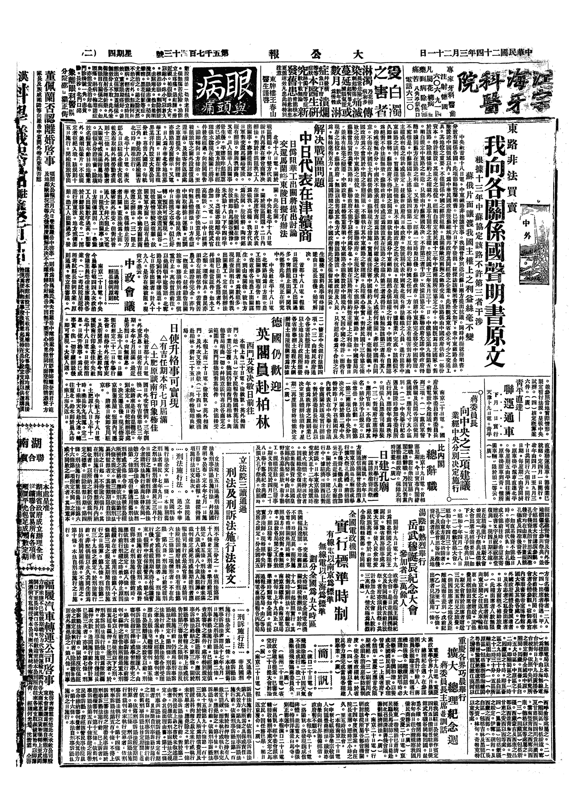 中华民国史大事记>19350321