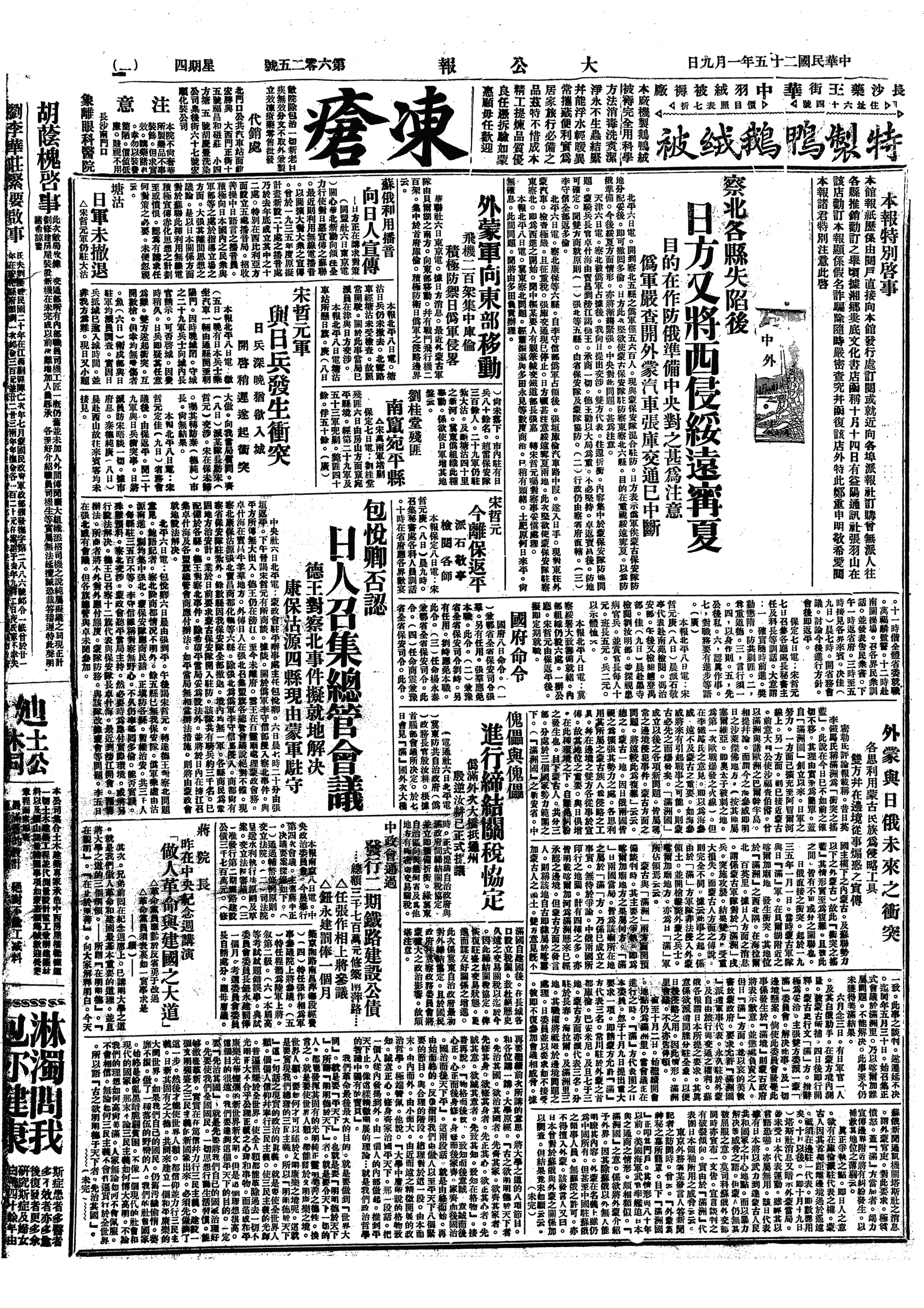 中华民国史大事记>19360109