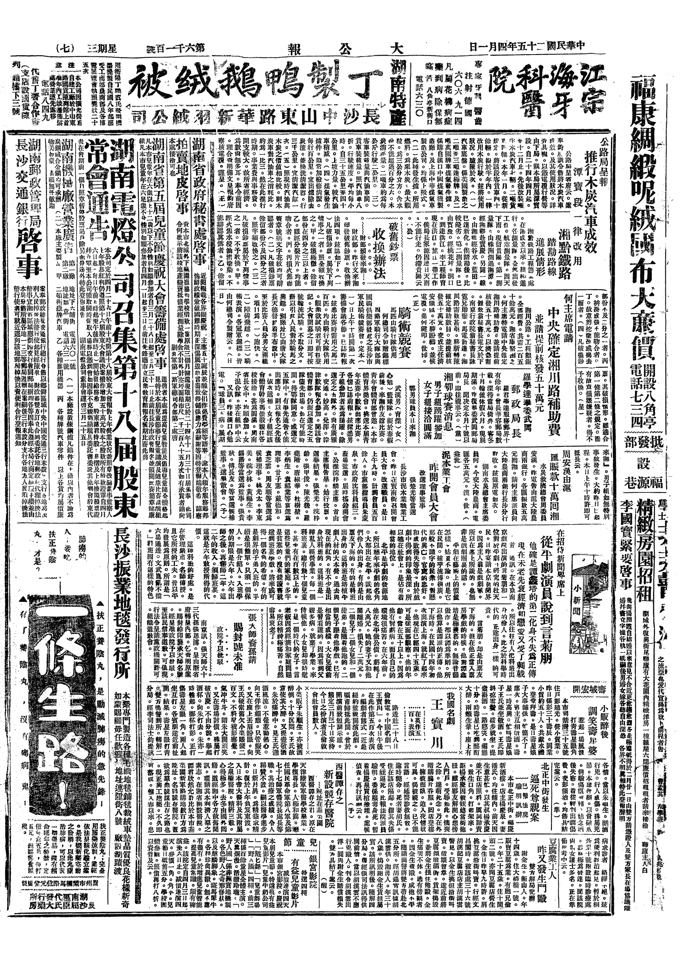 丙、天津大公报在上海设分馆发行(鉴於华北局势危迫)。
