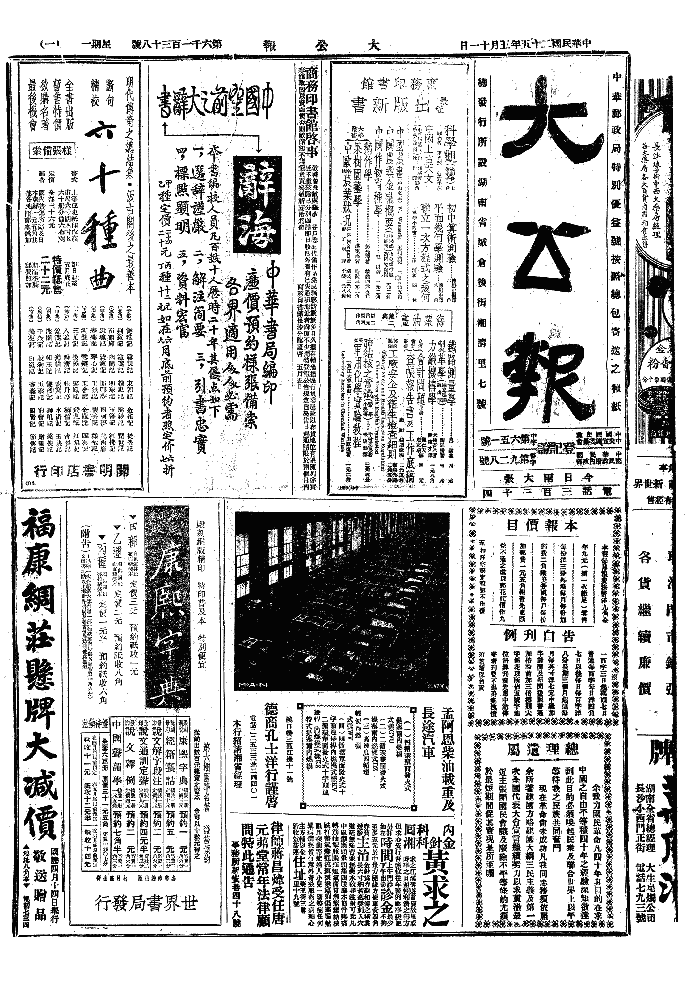 △ 实业部在上海设立之鱼市场开业,资本120万元,官商各半。