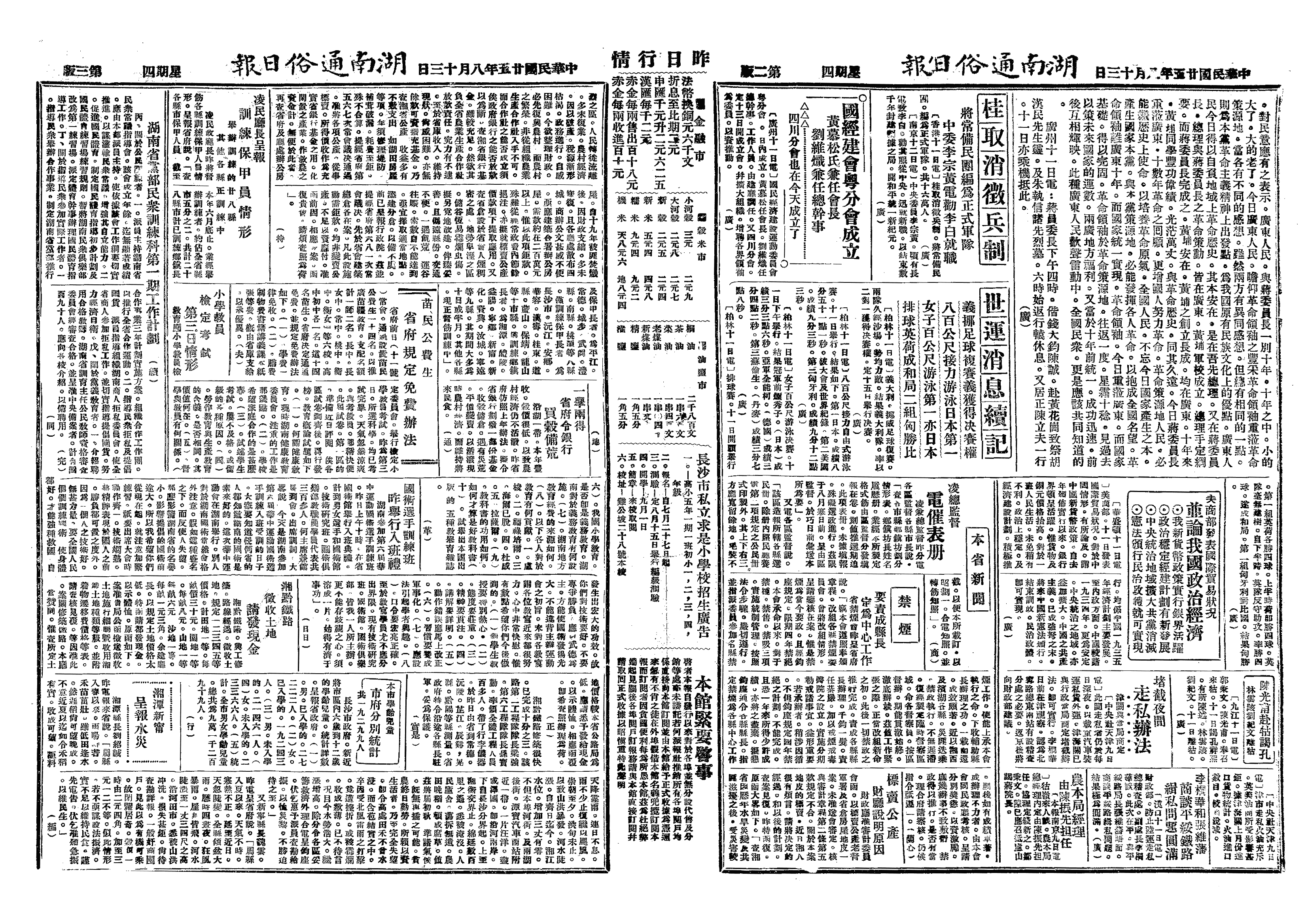 15日,宋子良、徐堪、陈行、陈光甫、顾翊群、贝淞荪等飞抵广州,整理粤省财政、金融。