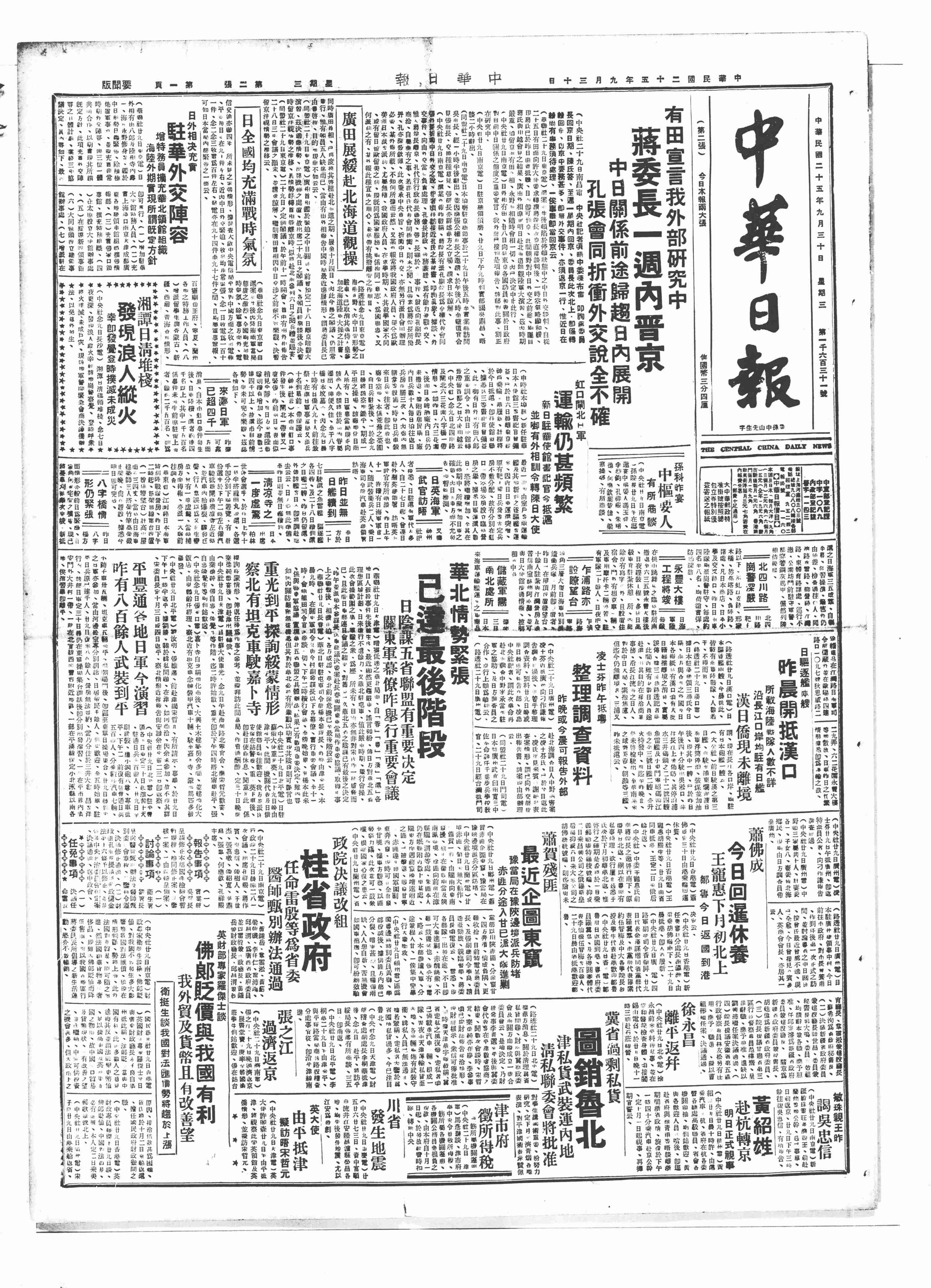中华民国史大事记>19360930