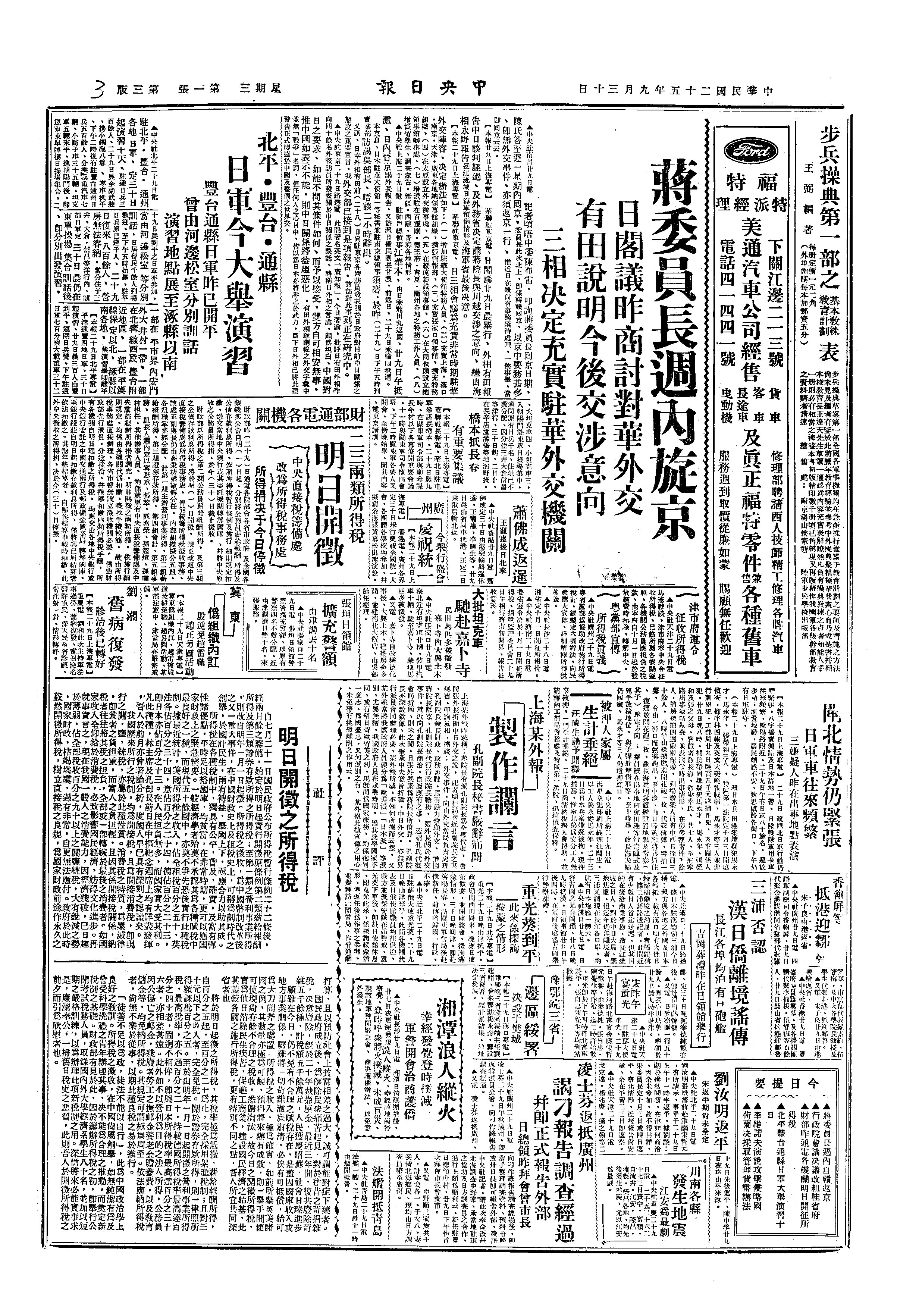 甲、北平天津日军大演习,谣言愈炽。