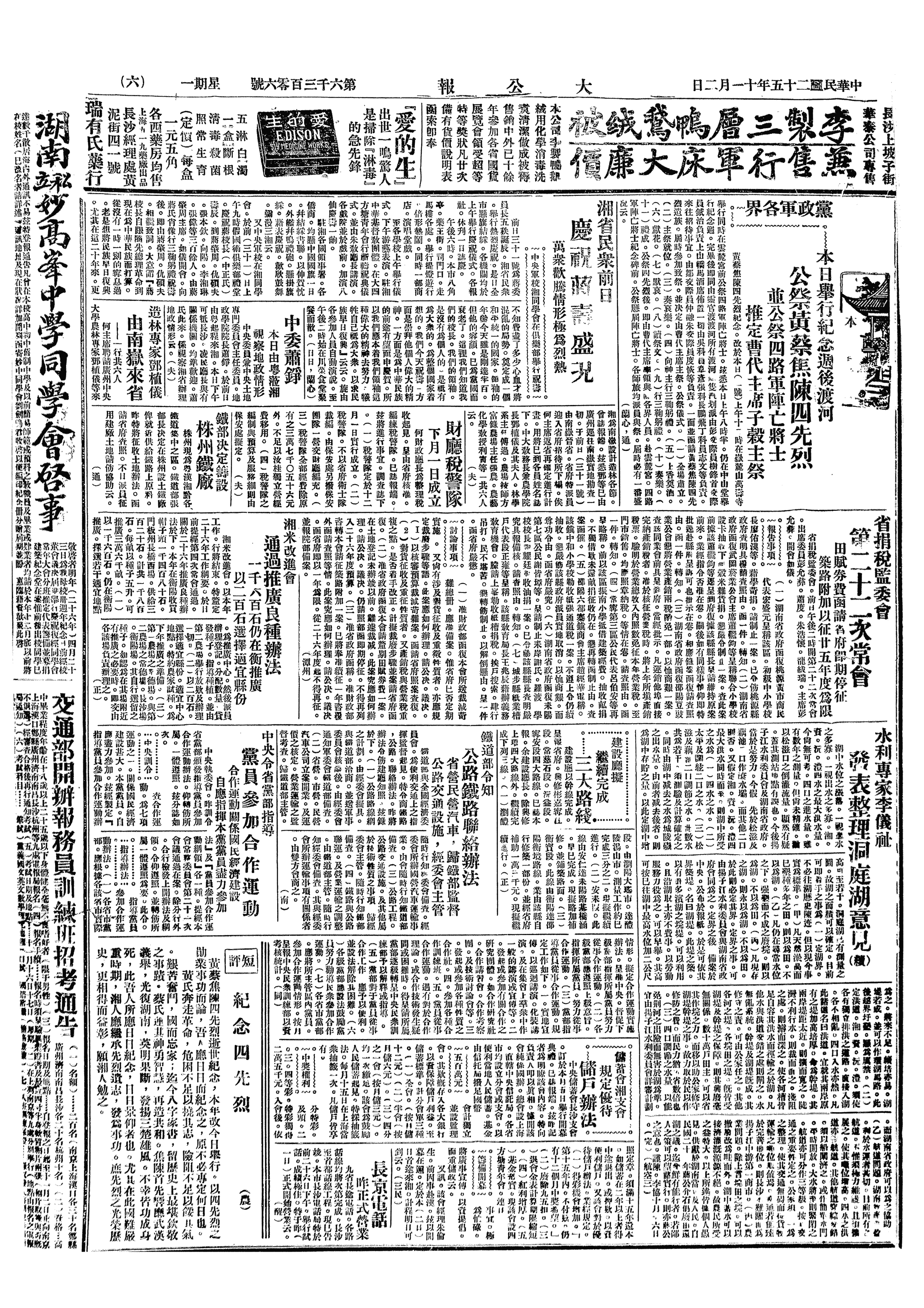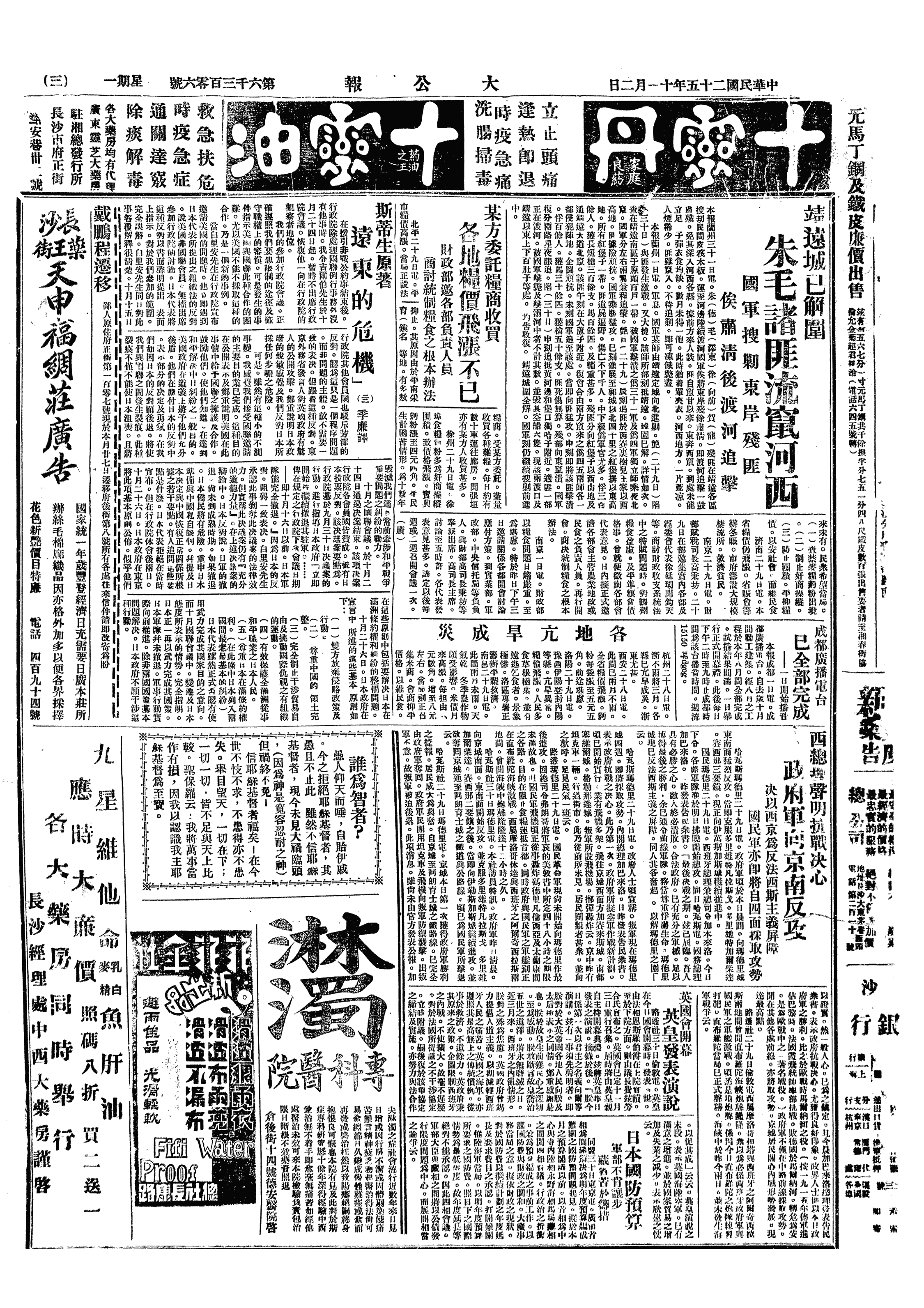 甲、段祺瑞病卒於上海,年七十二岁(1865-1936),段近忧心国事,夙疾转剧,日前李思浩到沪谈北方情势,尤愤恨。