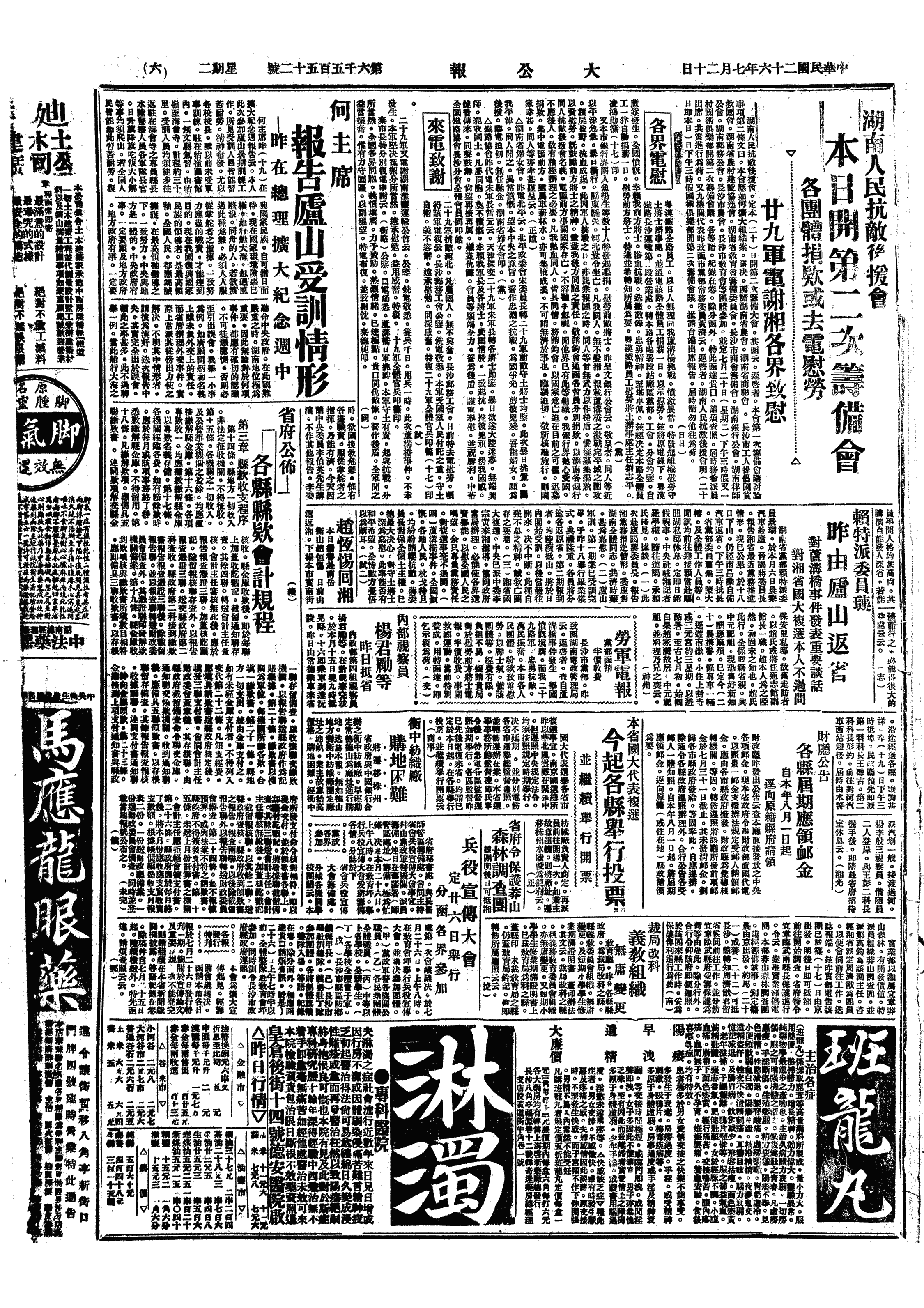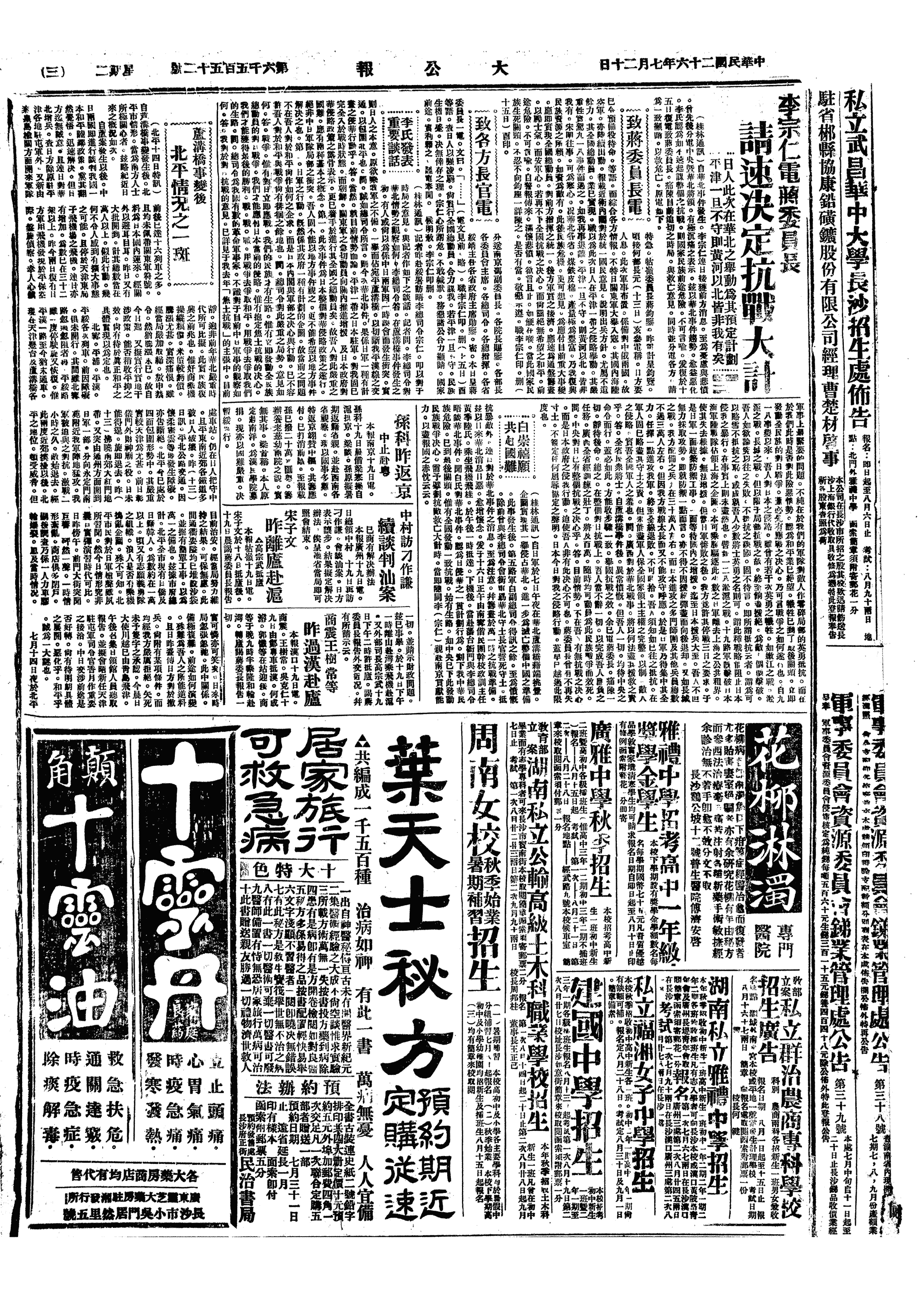 长沙大事记>19370720