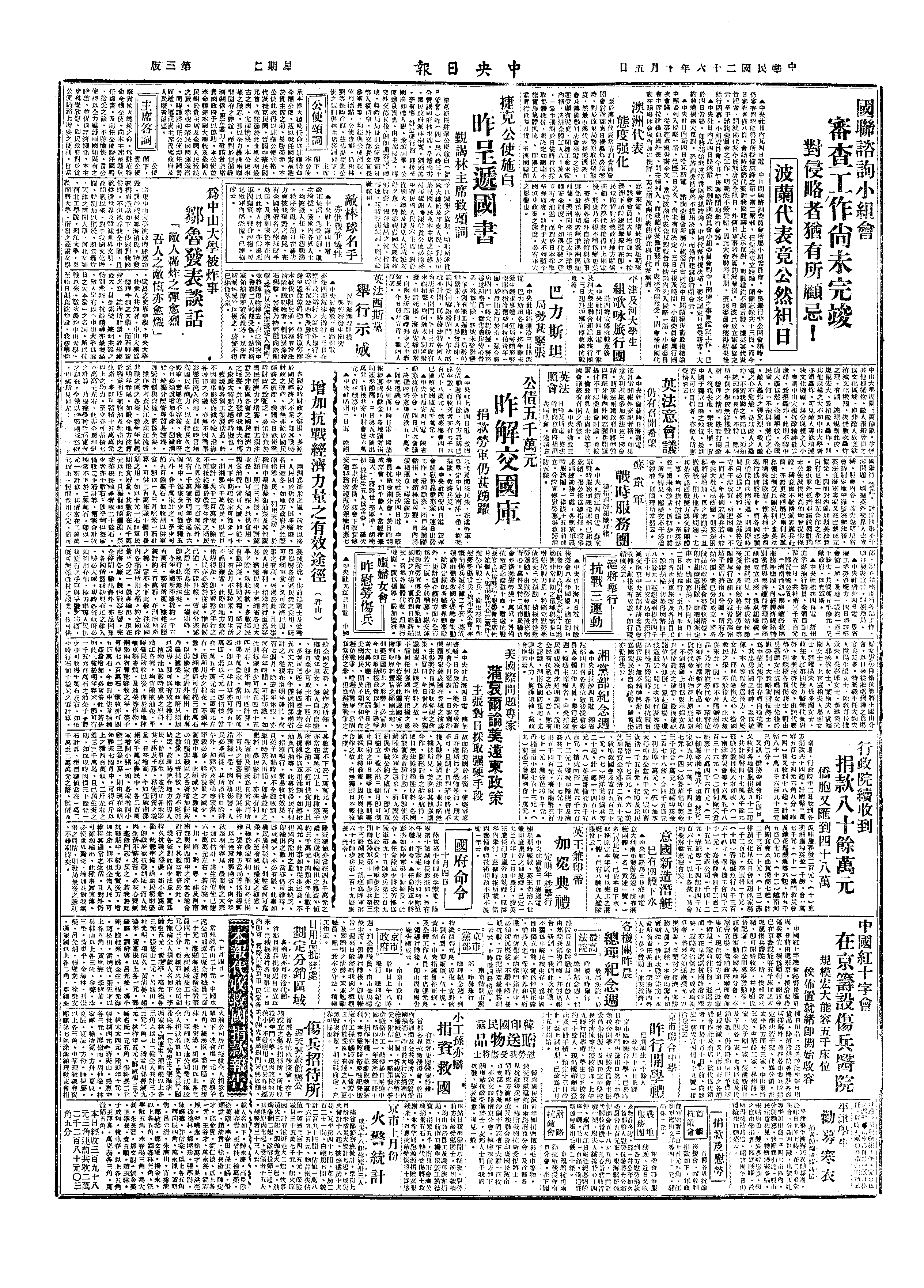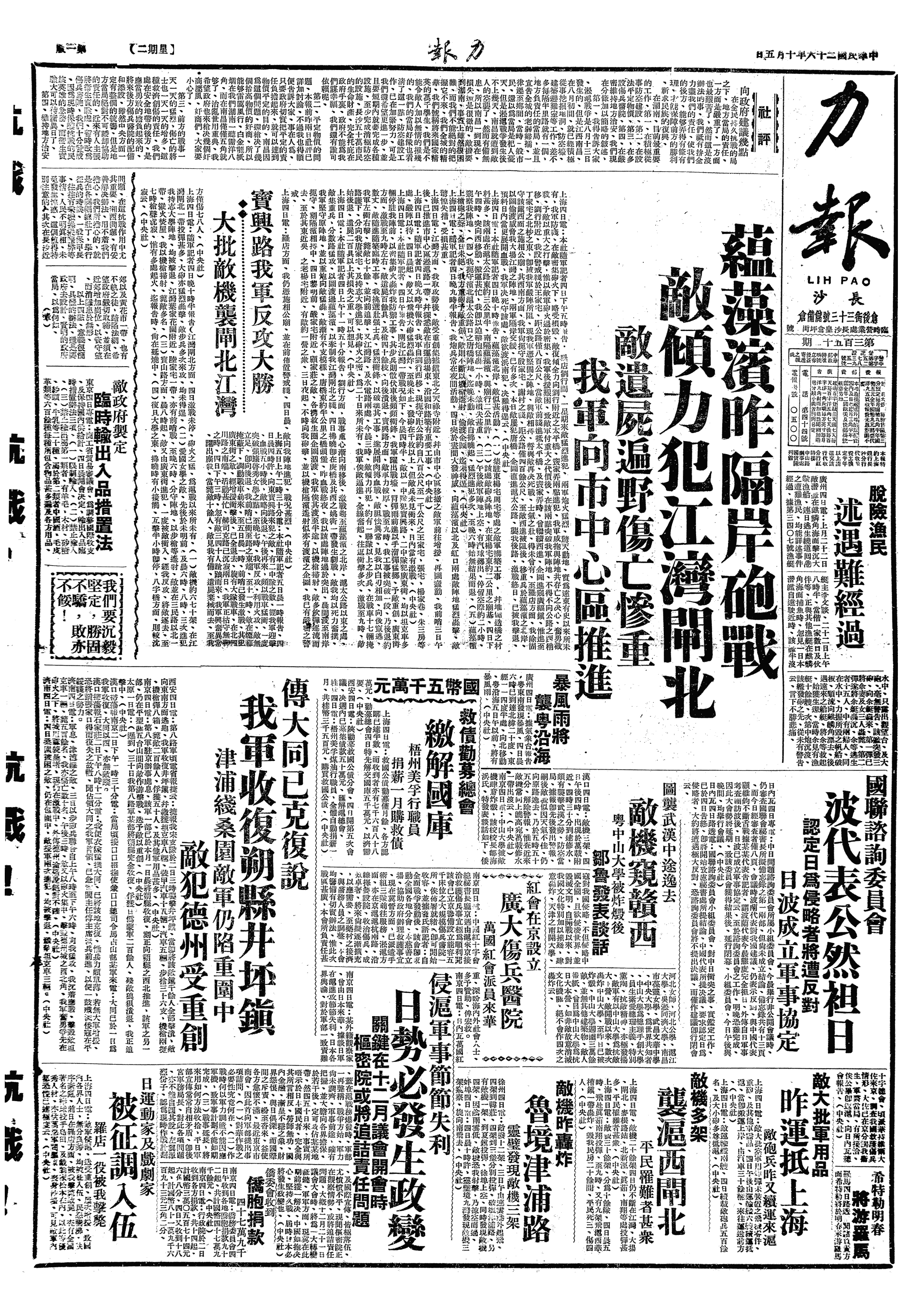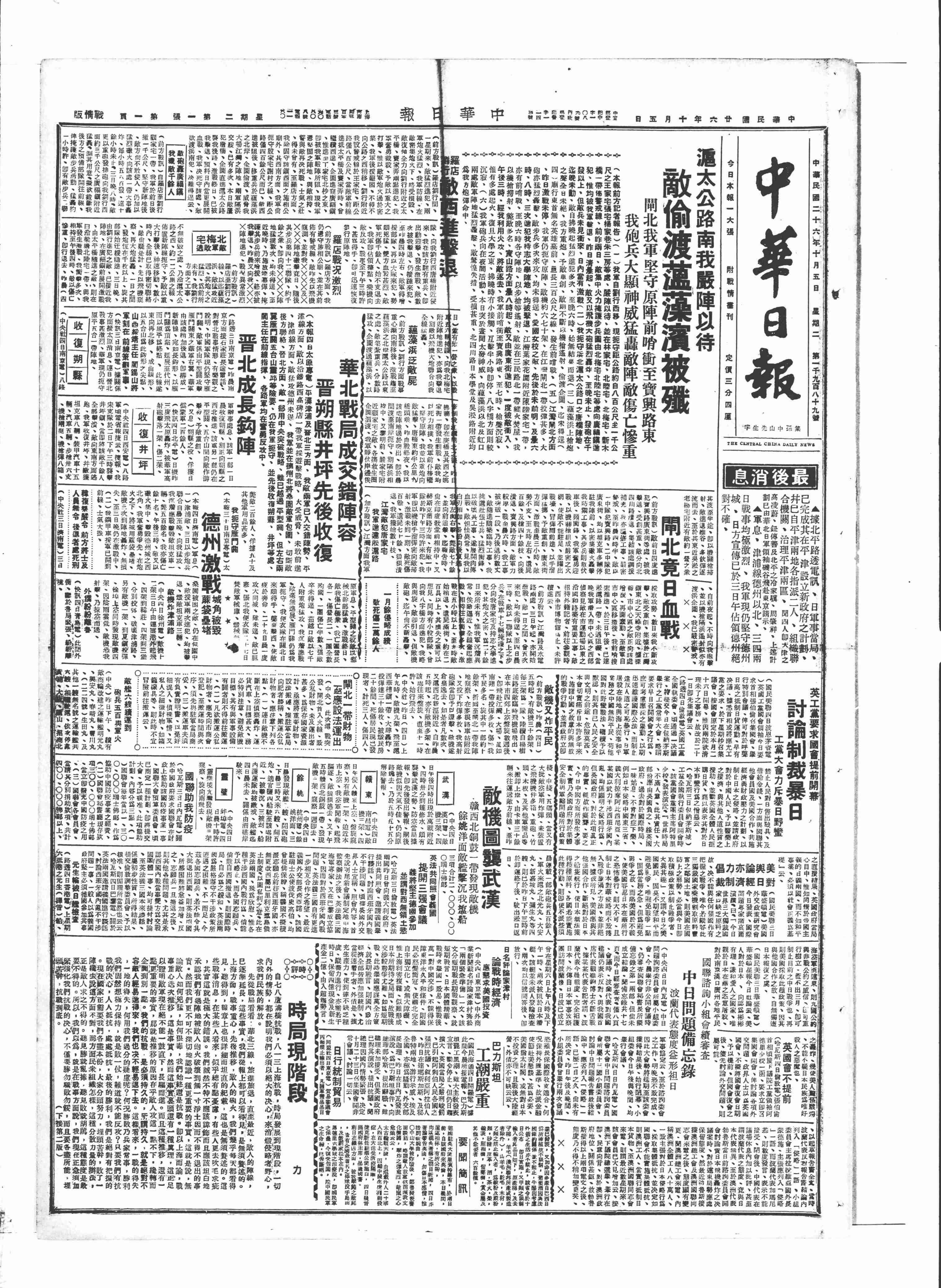 中华民国史大事记>19371005