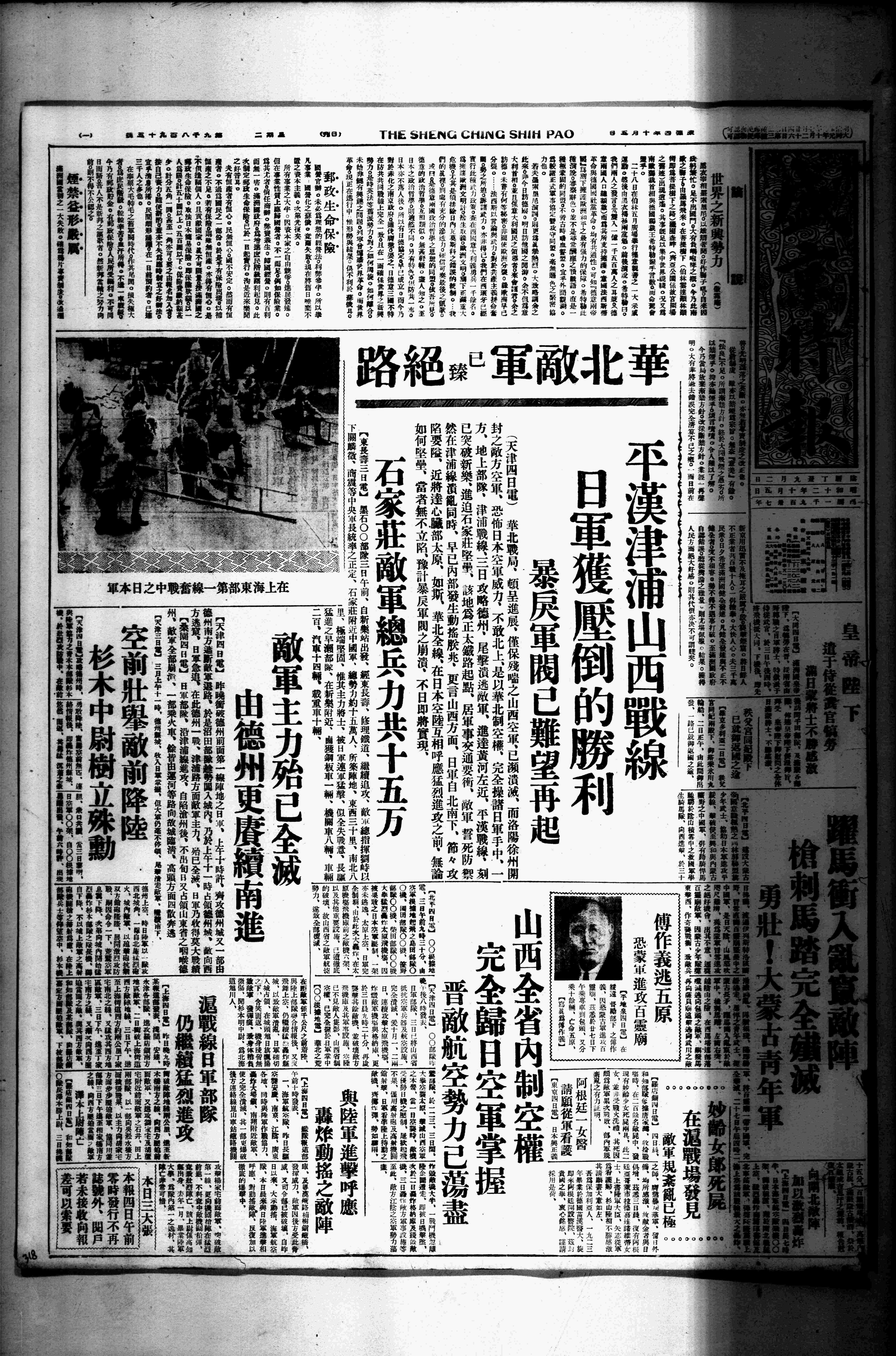 甲、津浦线敌陷德州,第243旅冯其昌部一个团战殁。