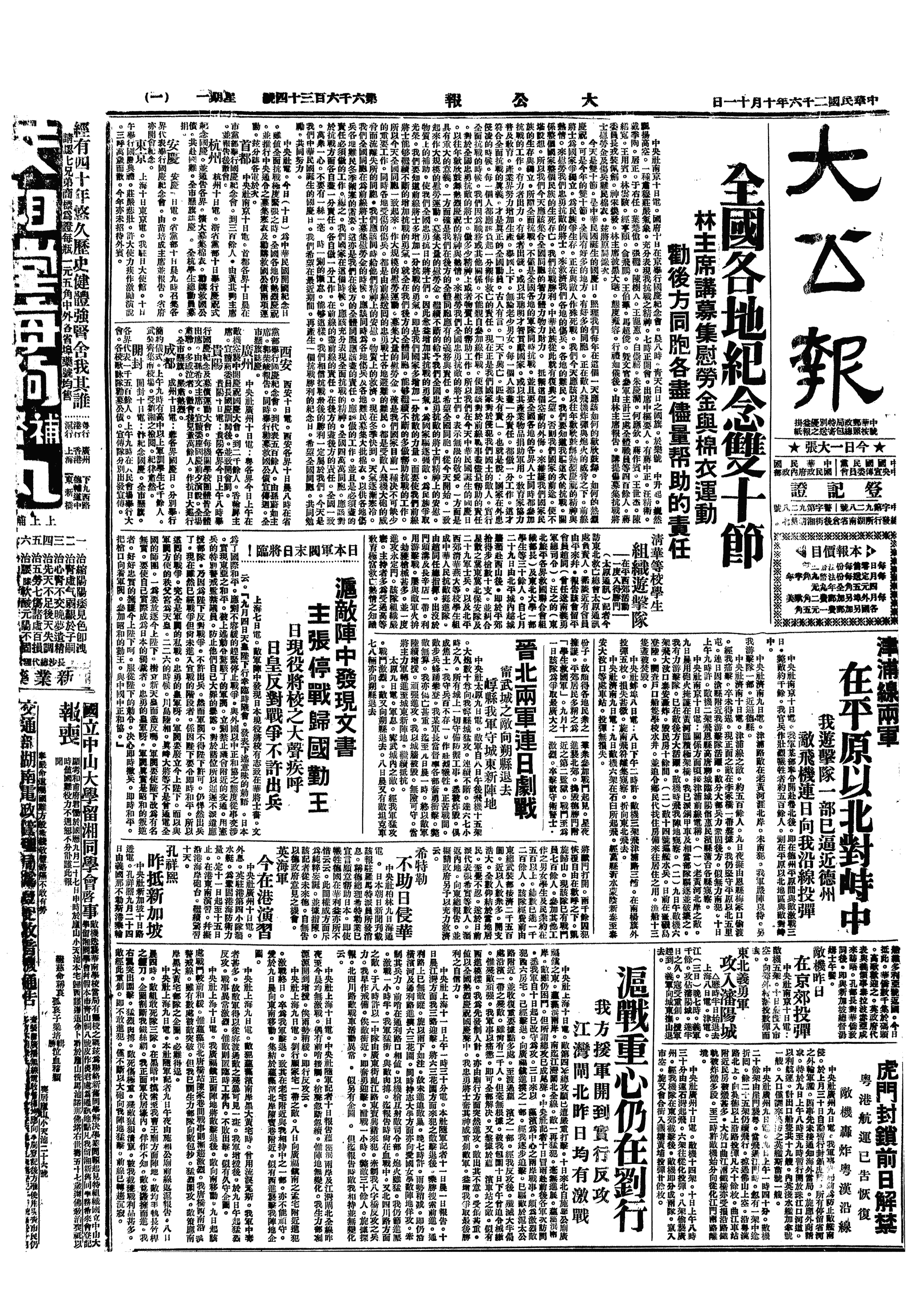 中华民国史大事记>19371011