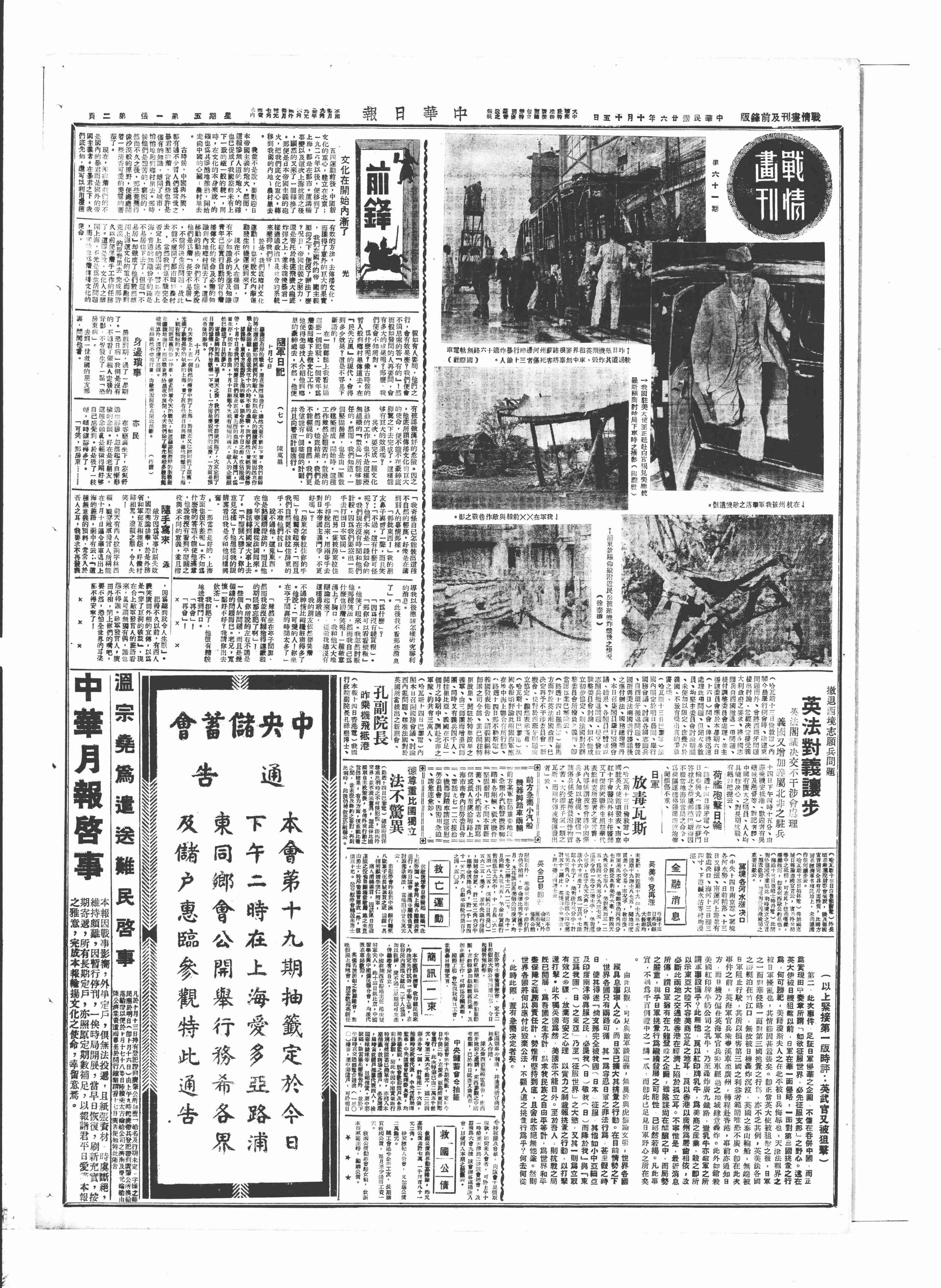 己、英国各大学教授电教育部,谴责日机炸我文化机关。