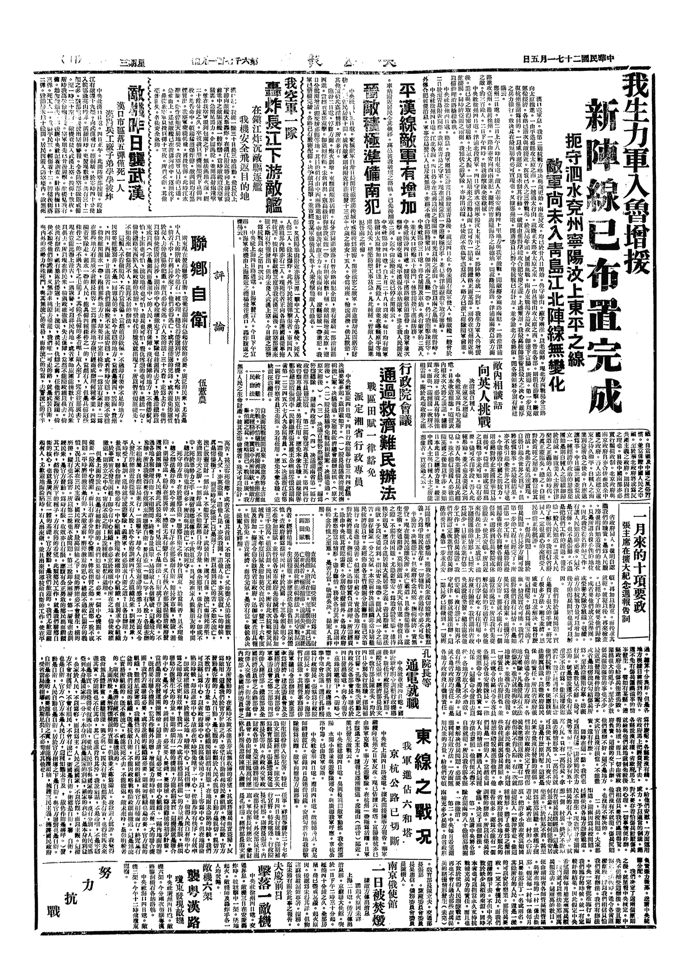 强调保卫湖北“不能单靠正规军的作战,或某一阵地的防守;