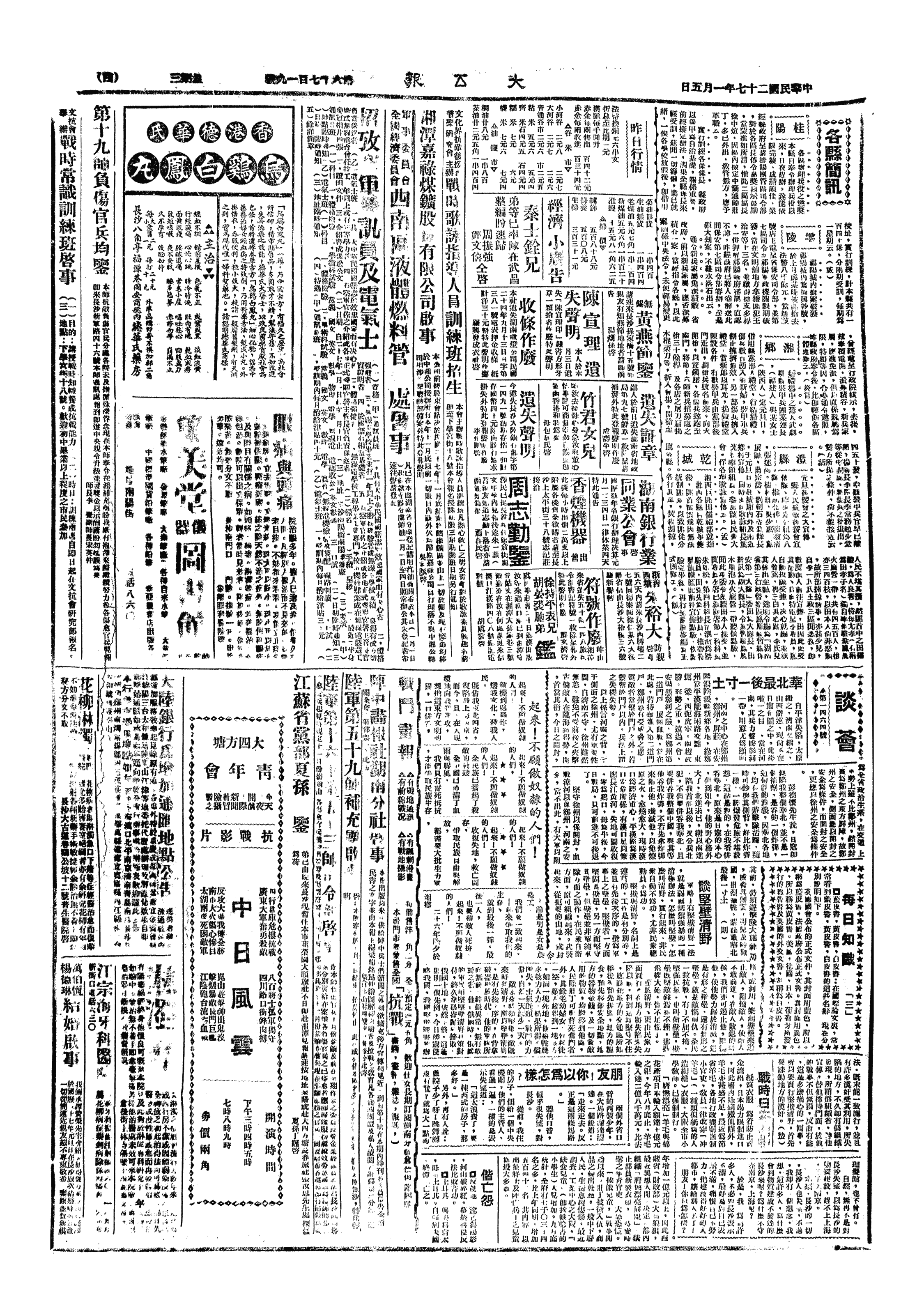 △ 湖北战时乡村工作促进会成立,并发表宣言: