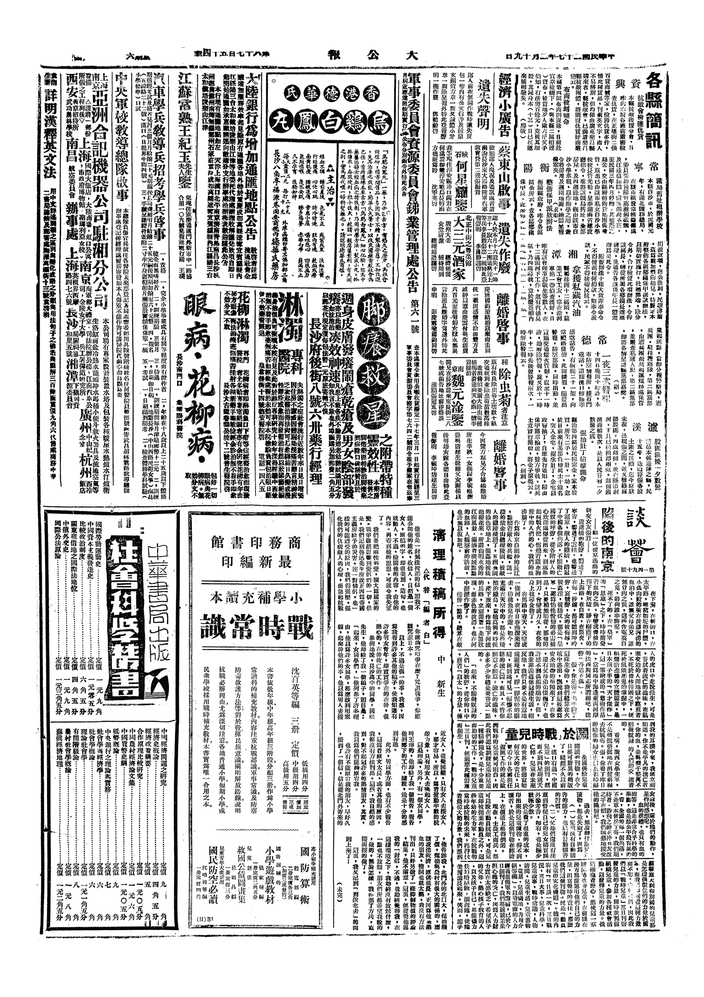 早餐后,出院。共计用去七十元,尚未十分痊愈。午渡江返校。校中江北人狼狈为奸,不工作而领薪,糜费国家,贻误青年。