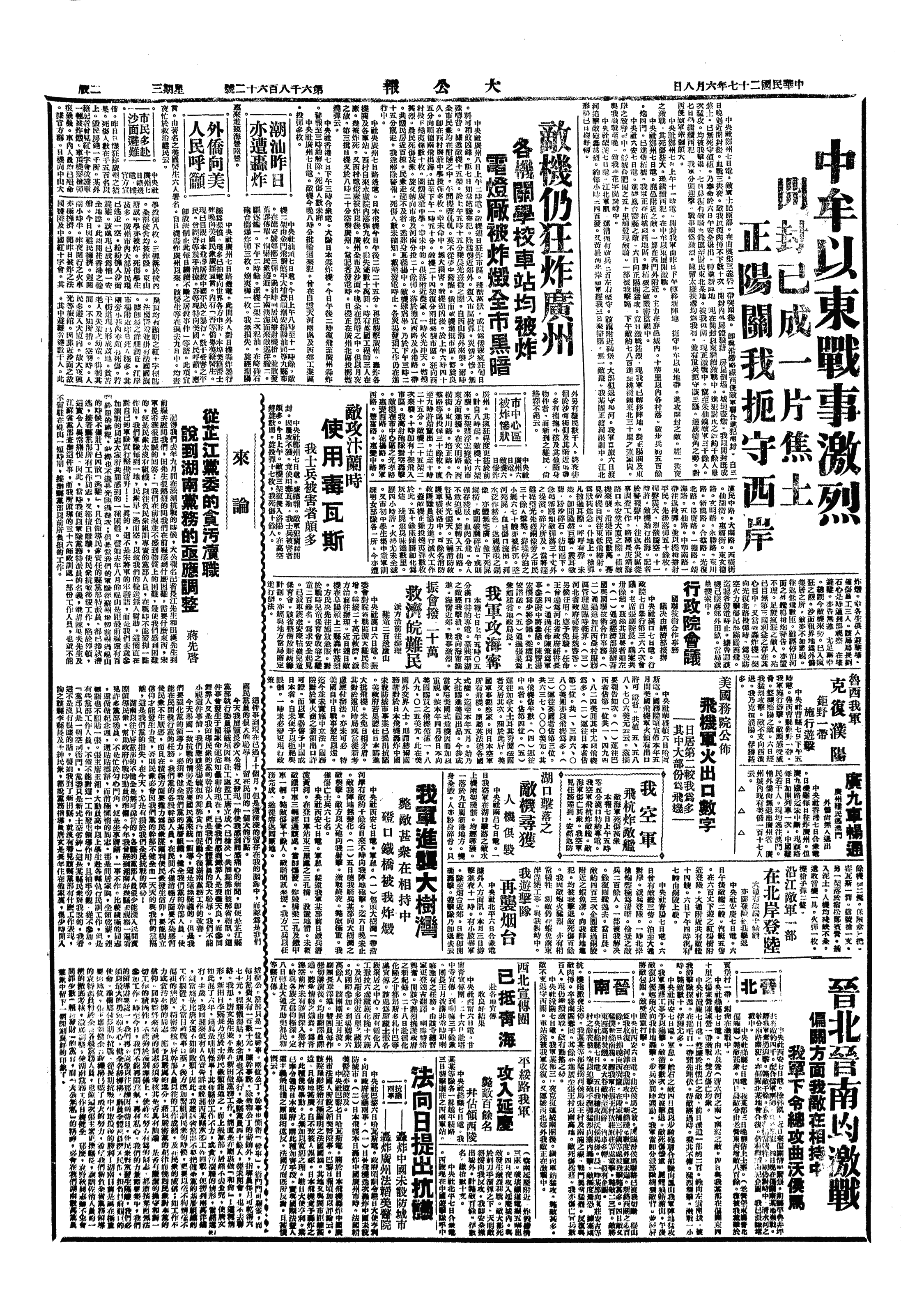 湖南抗战日志>19380608
