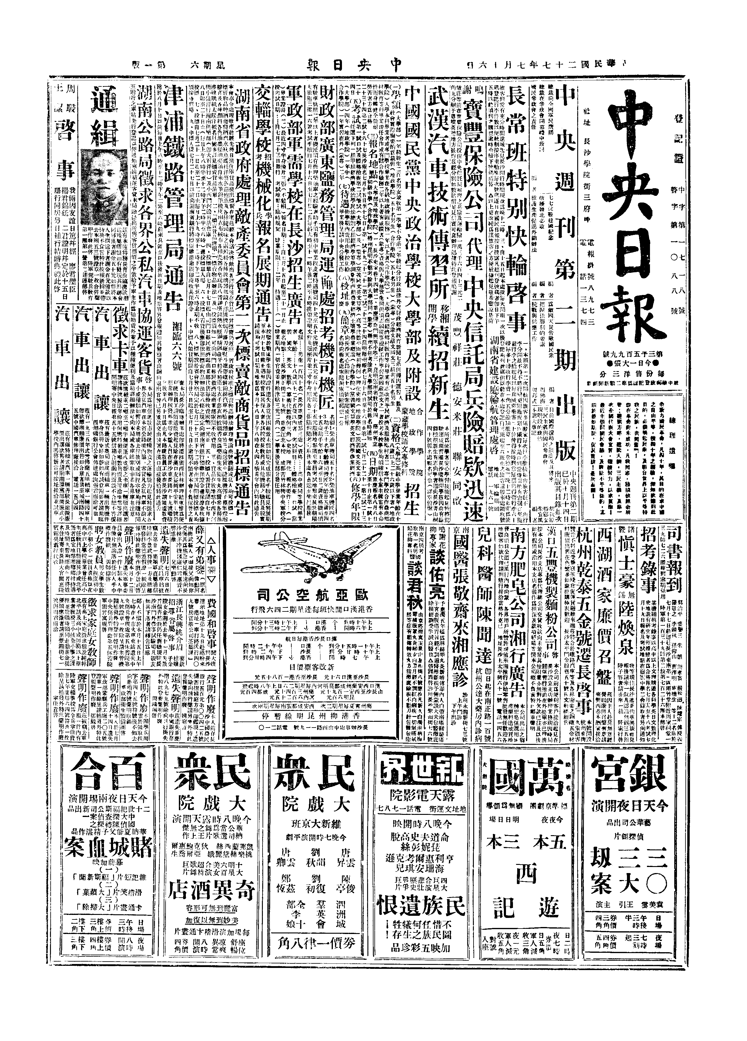 长沙大事记>19380716