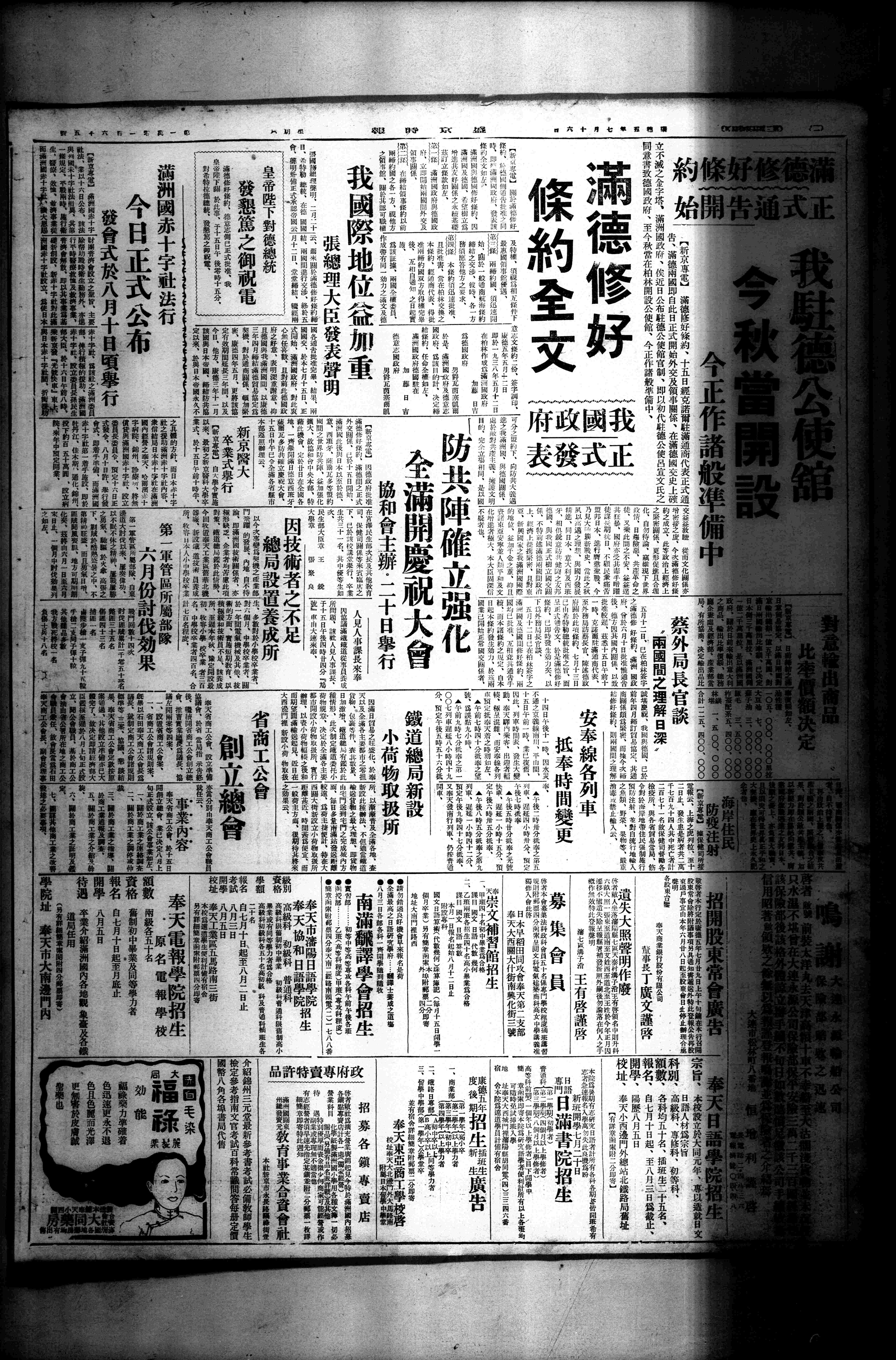 日伪统治东北时期大事记>19380716