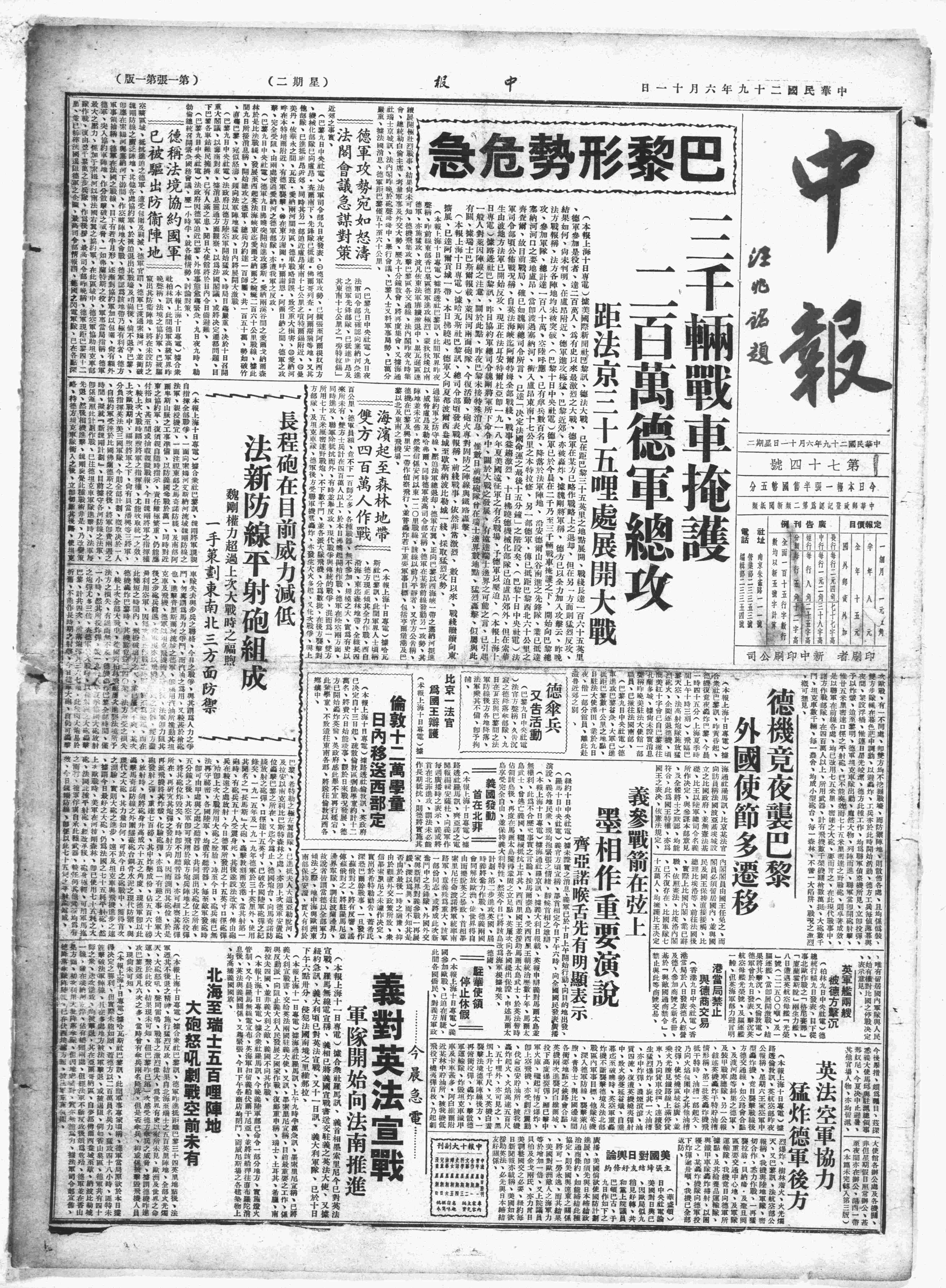 中华民国史大事记>19400611