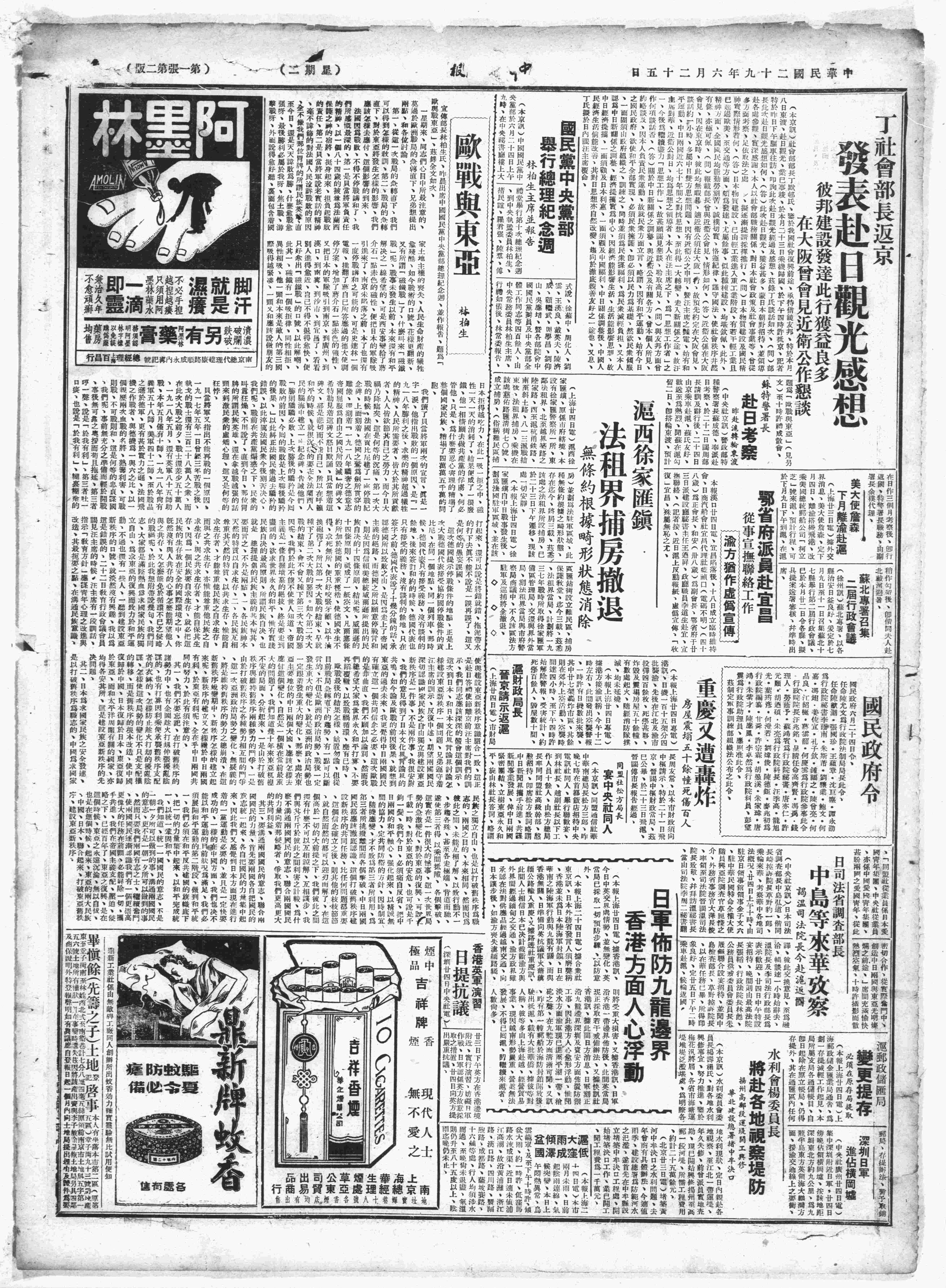 中华民国史大事记>19400625