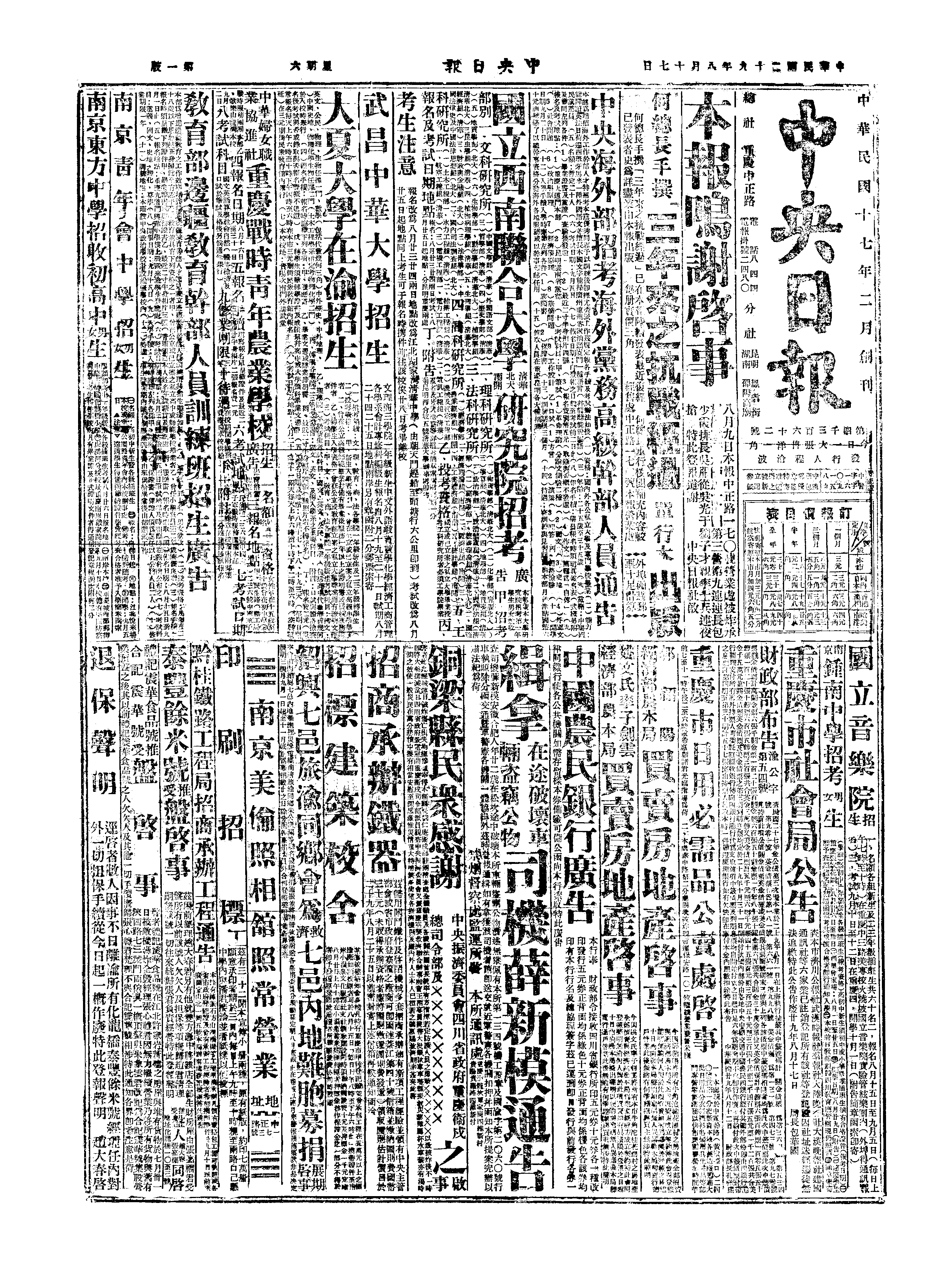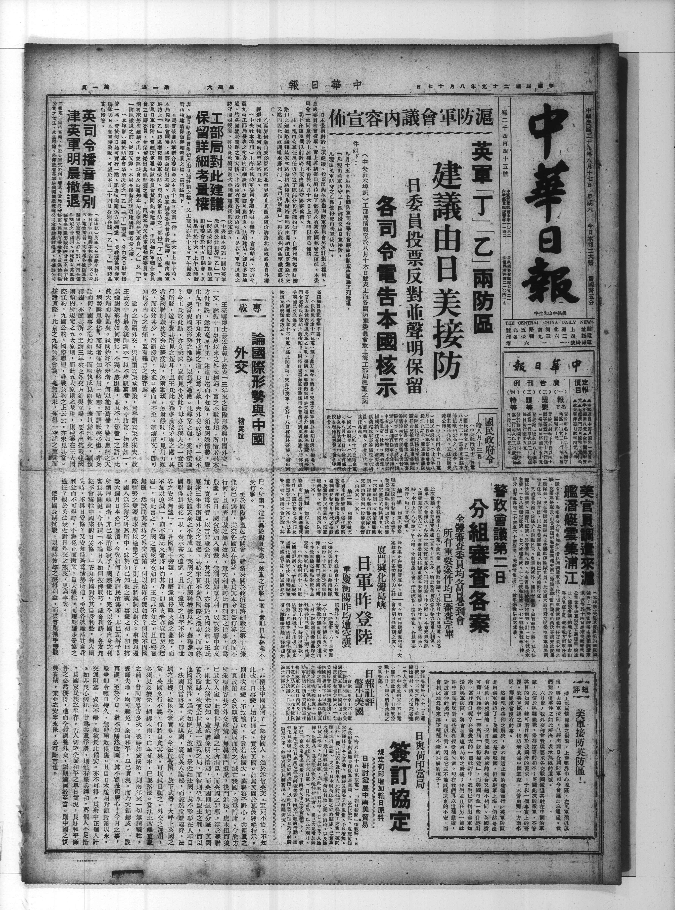 中华民国史大事记>19400817