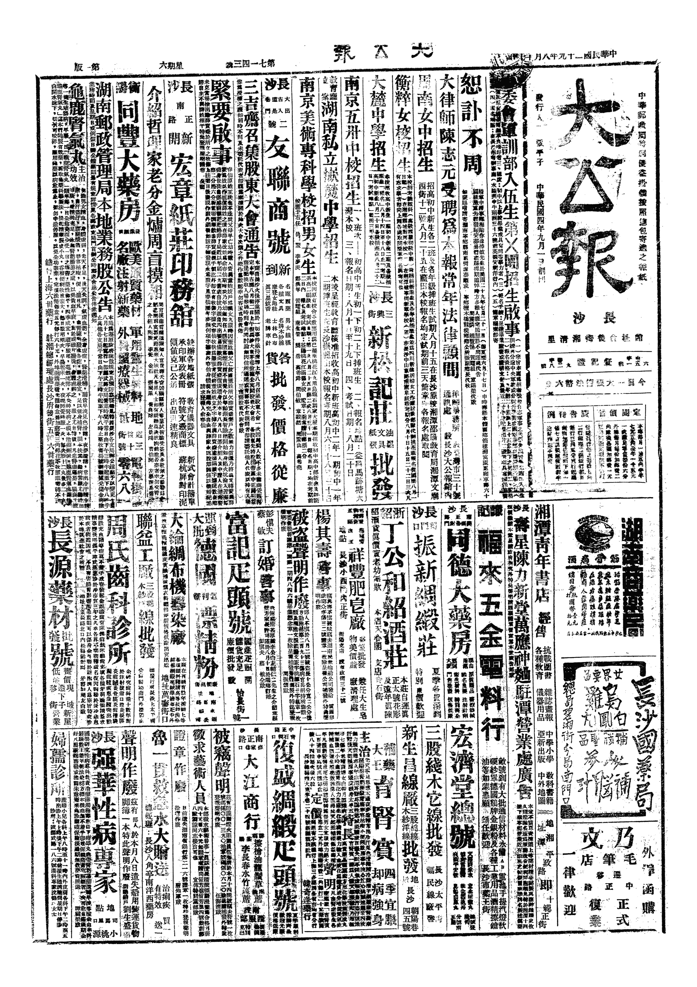 长沙警备司令部发布通告:1、着令长沙警察局挨户晓谕市民加紧疏散;2、即日起每日上午7时一下午3时为临时疏散时间,以天心阁炮声为准,全市民众,一律按时疏散至城外乡村,各商店在疏散时间,概行停止营业,午后3时呜炮方准返城开市。