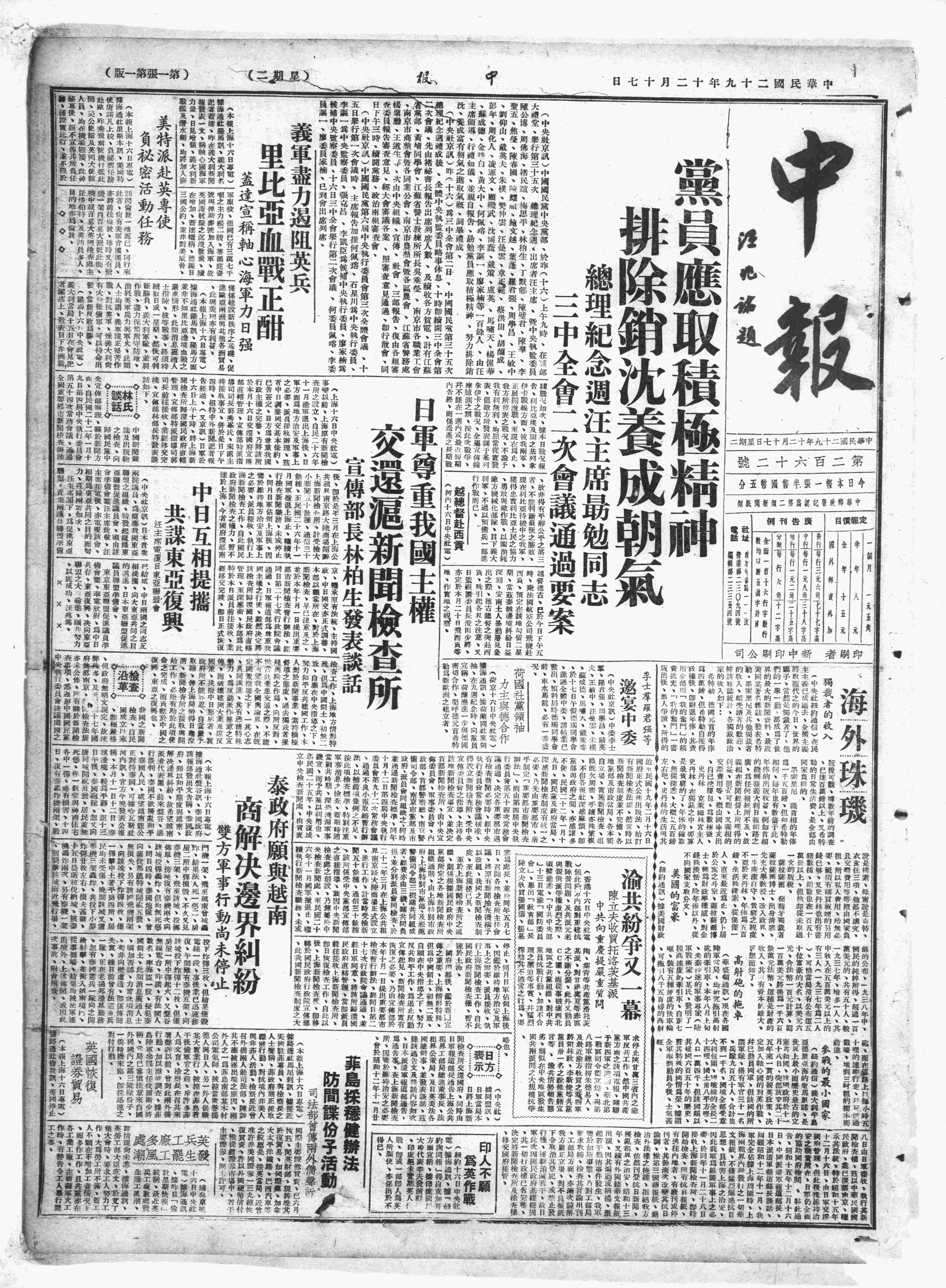 中华民国史大事记>19401217